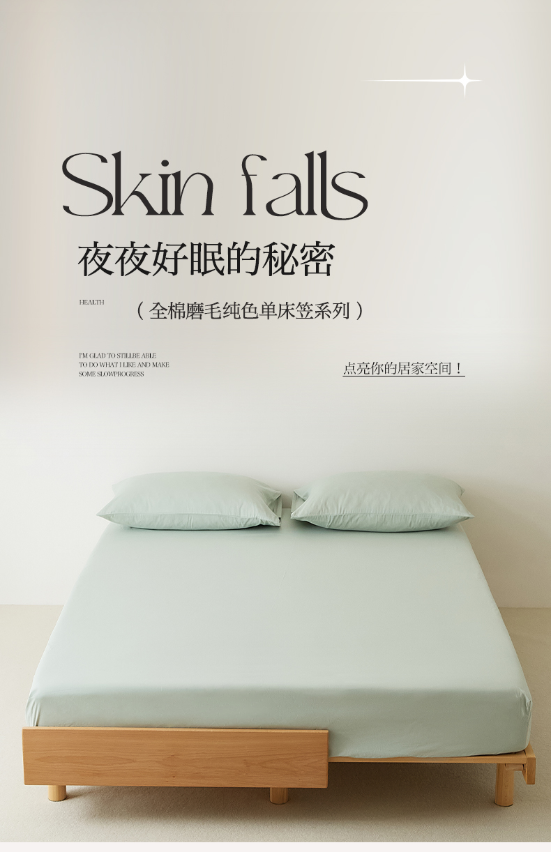 EH家居 2025新款全棉磨毛纯色单床笠-云栖系列 景蓝色