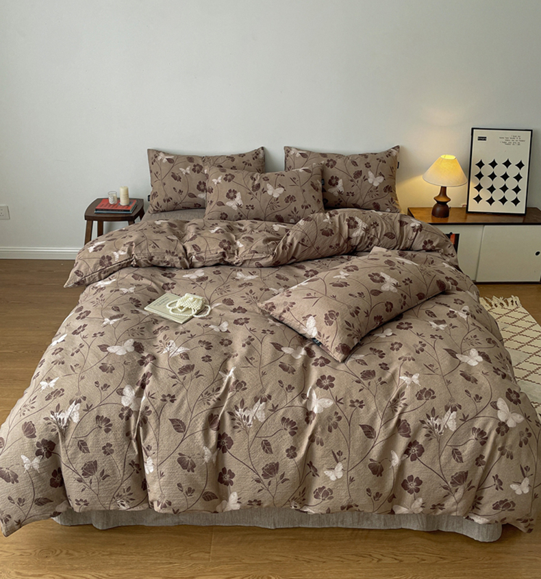 梦纤绒 2025秋冬新款A类高克重亚麻复古诧季风原麻系列四件套 水墨青筠咖