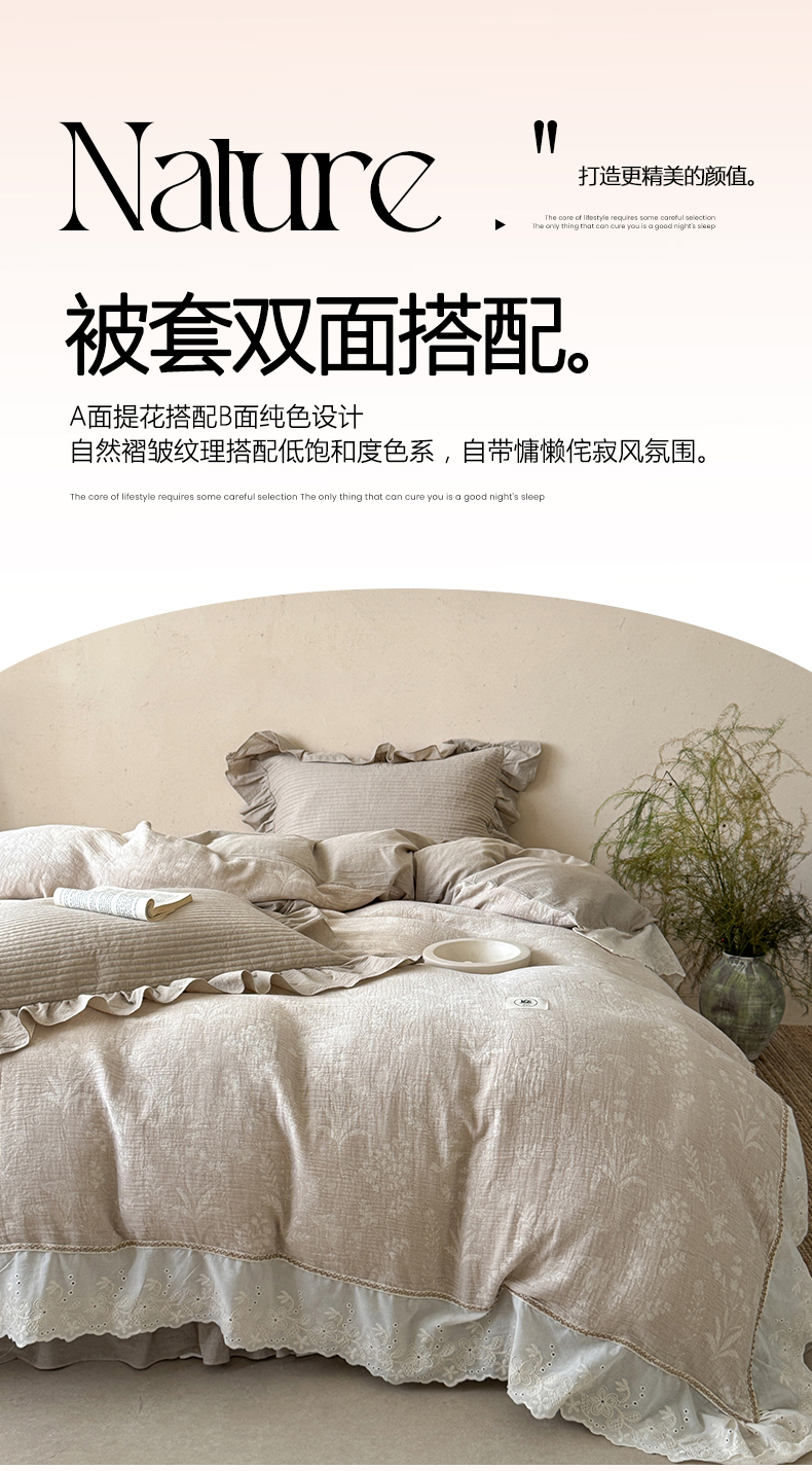 当前位置: 91家纺网 > 商品网购 > 床品套件 > 四件套 > 全棉普通四件套 > 漫调家纺 2025新款棉麻提花床盖四件套-棉麻絮语 棉麻絮语-咖