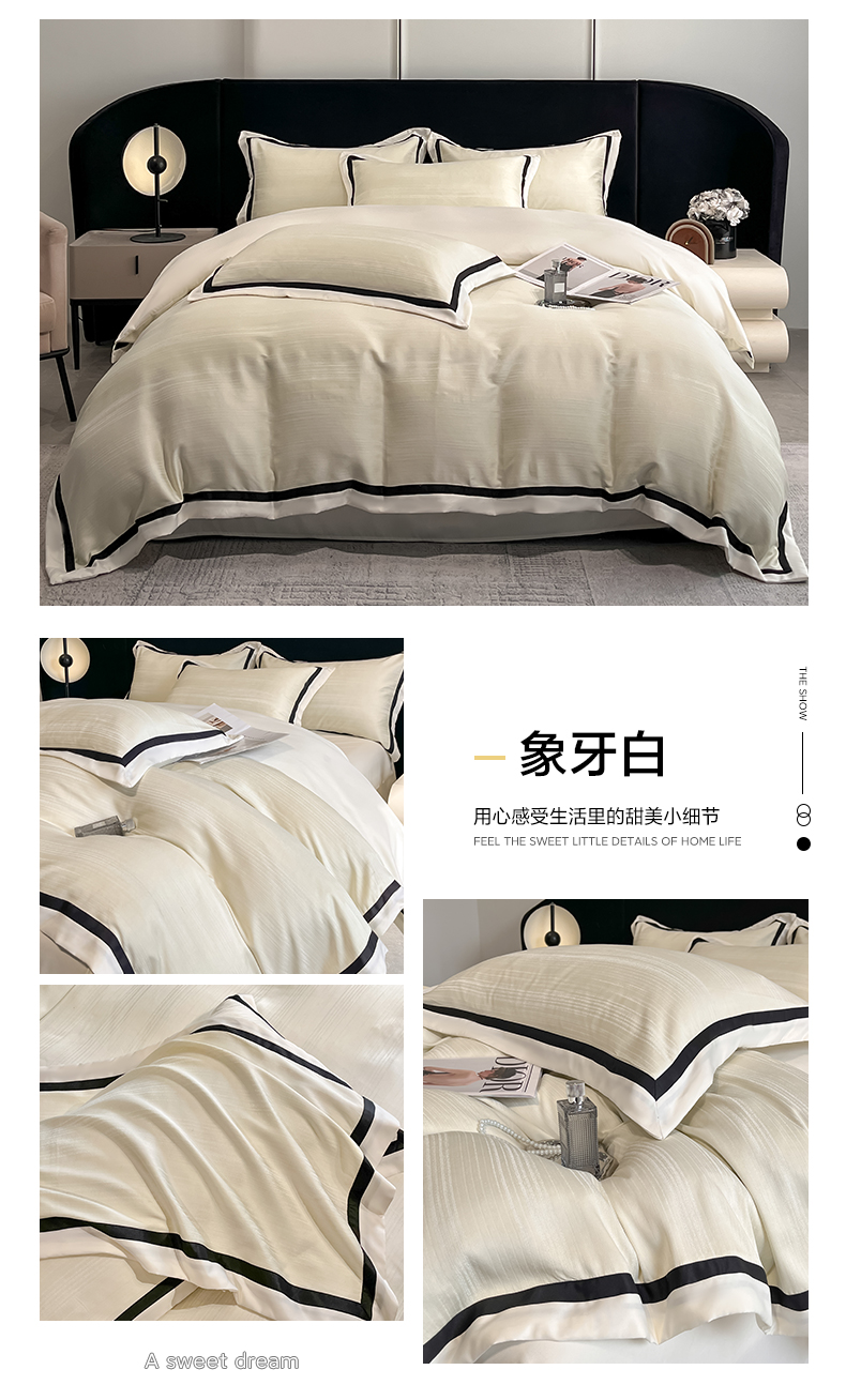商品名称:博纳家纺 2025新款双色宽边高级简奢款四件套-维多利亚 象牙白