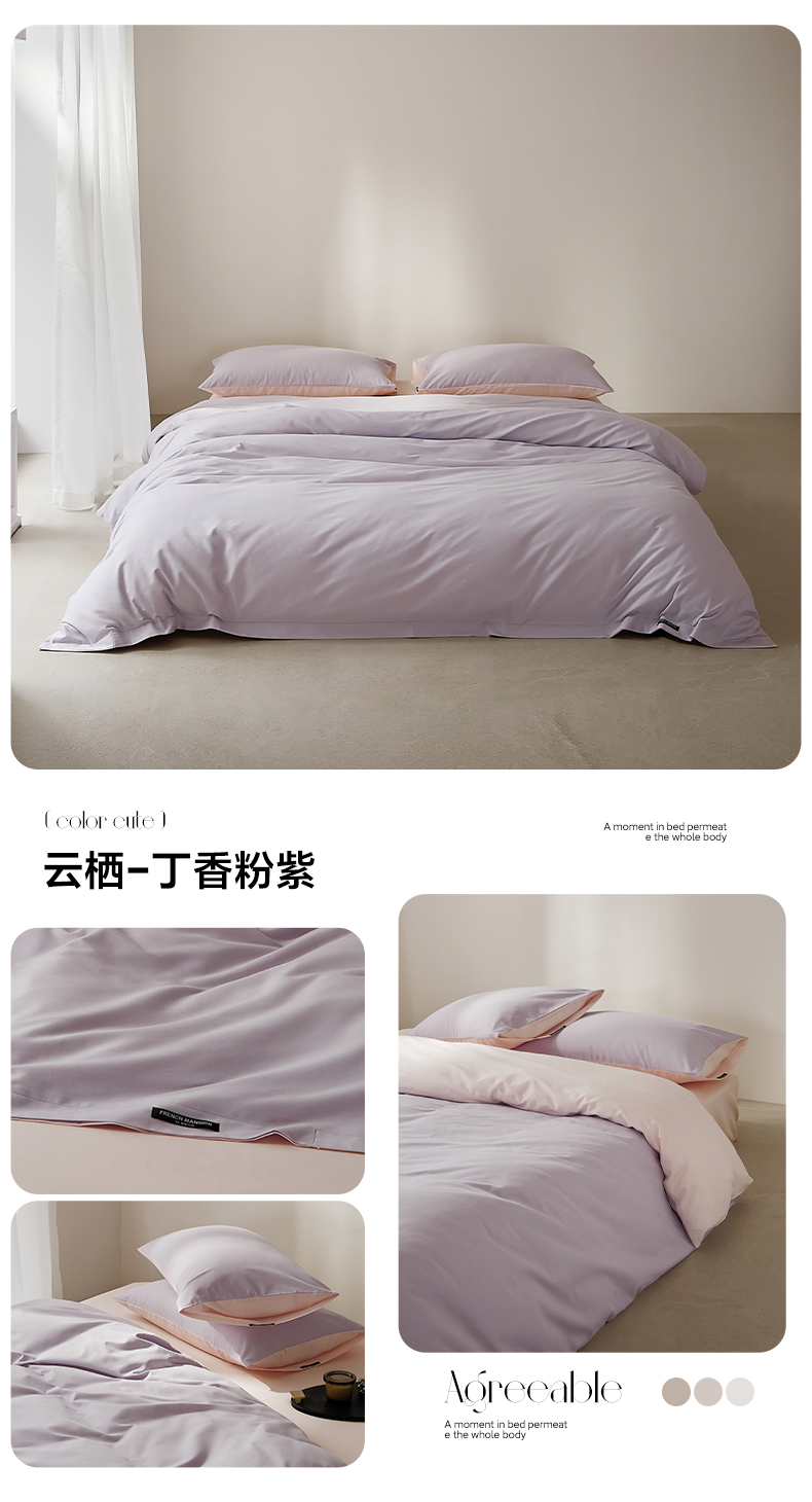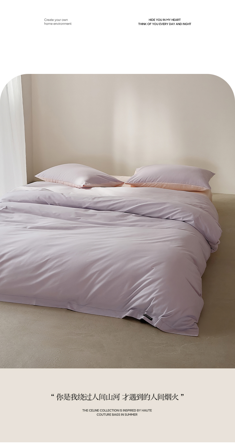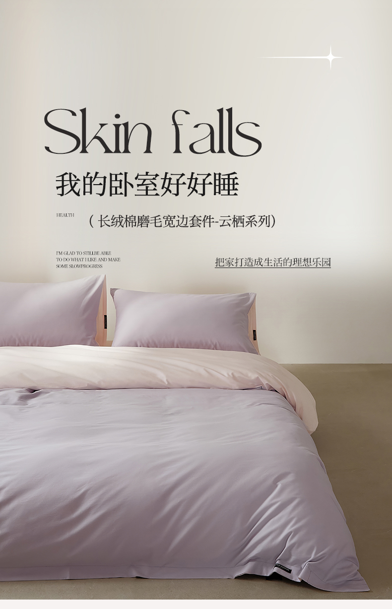 当前位置: 91家纺网 > 商品网购 > 床品套件 > 四件套 > 全棉活性四件套 > EH家居 2025新款100S长绒棉小宽边磨毛四件套--云栖系列 丁香粉紫
