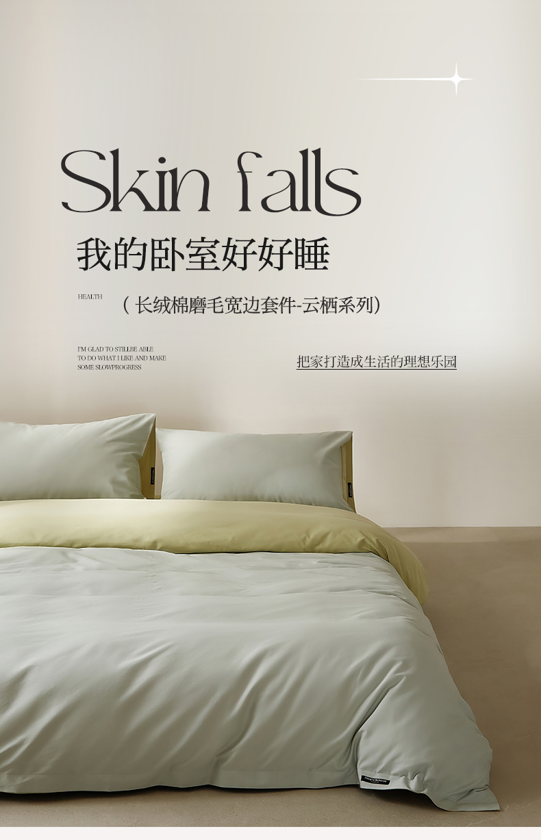当前位置: 91家纺网 > 商品网购 > 床品套件 > 四件套 > 全棉活性四件套 > EH家居 2025新款100S长绒棉小宽边磨毛四件套--云栖系列 香草晴空