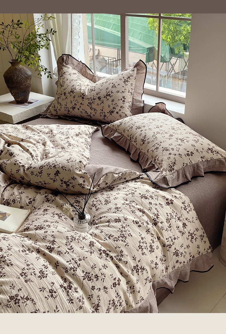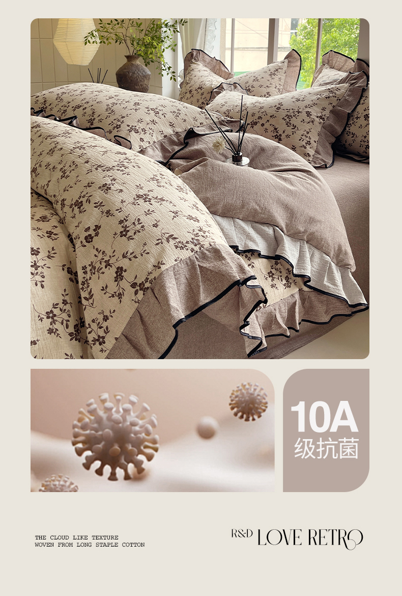 宝士康家纺 2025新款原麻荷叶边四件套 花枝漫天