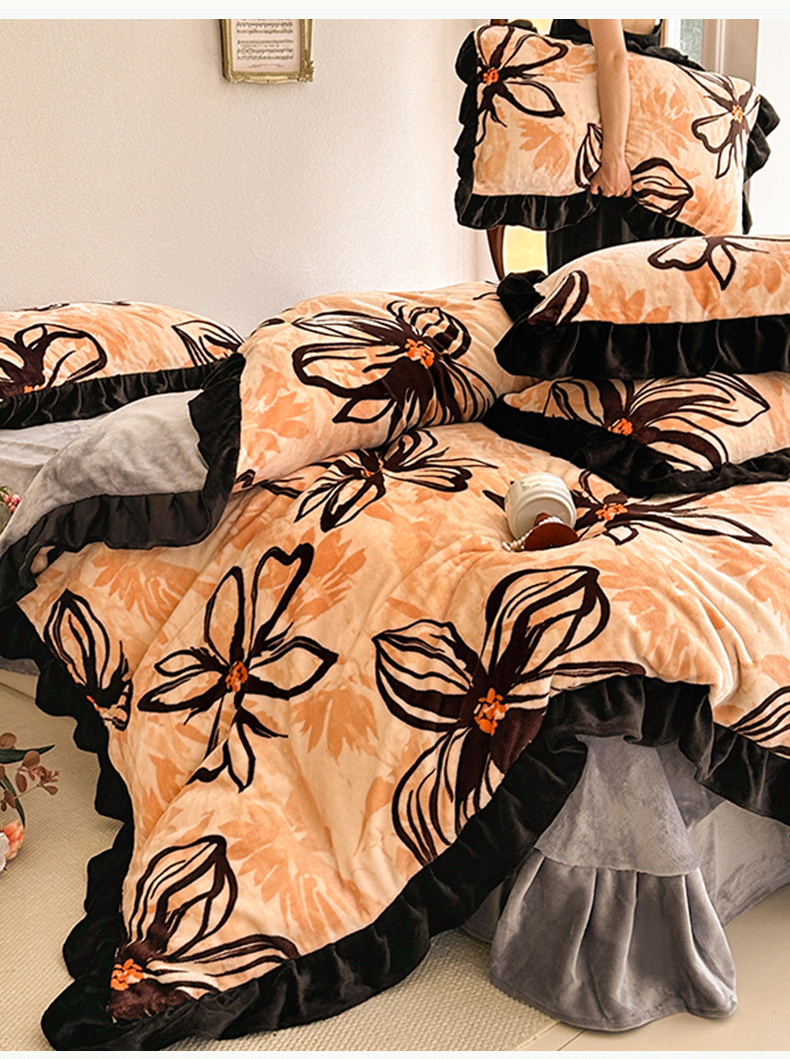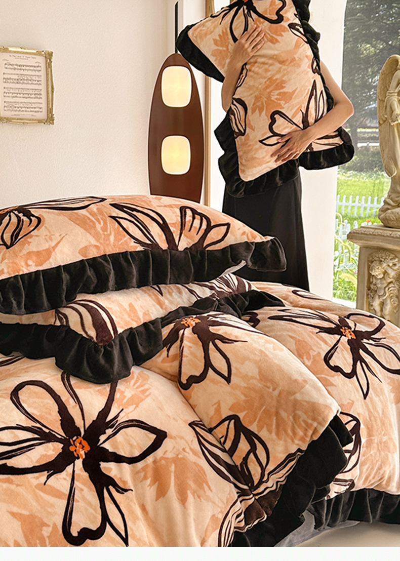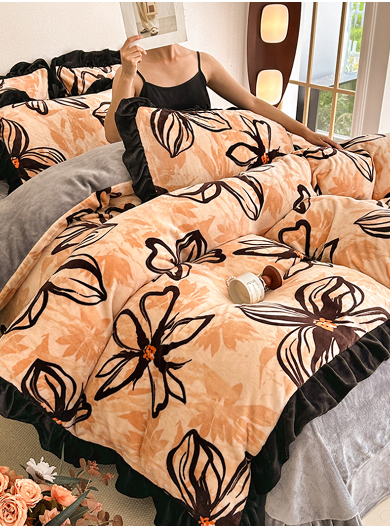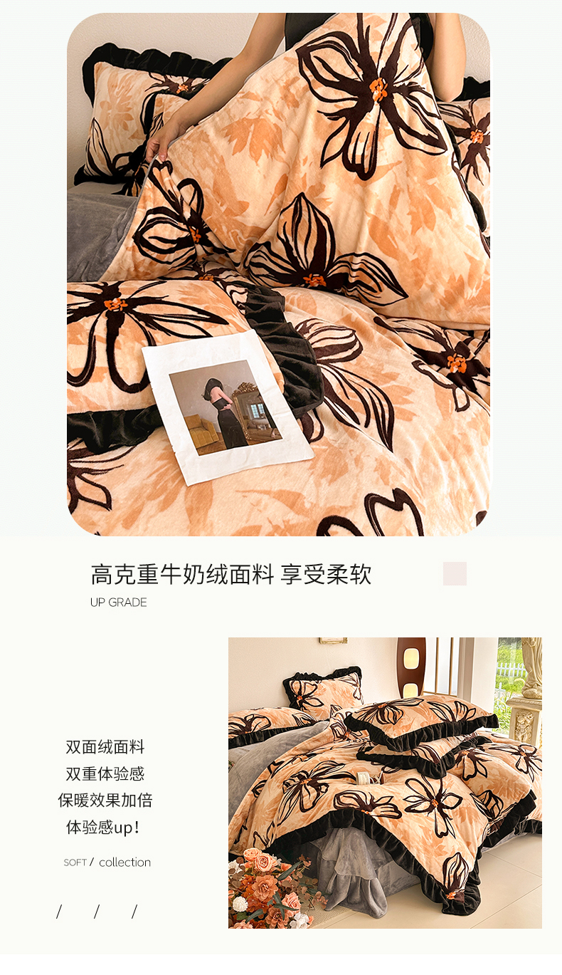 佳一 2025新款高克重8-9斤 印花牛奶绒四件套 花样情怀,花样情怀