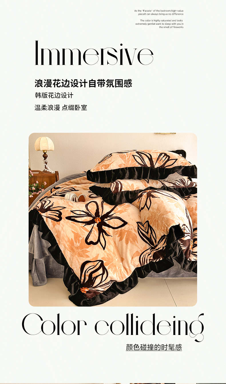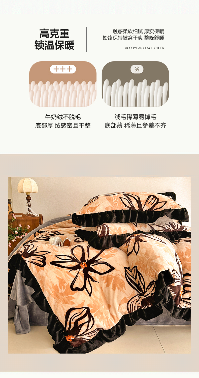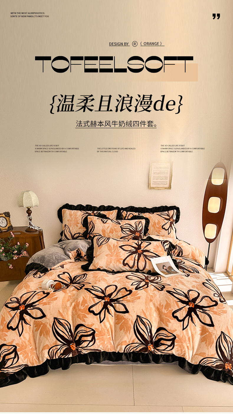 佳一 2025新款高克重8-9斤 印花牛奶绒四件套 花样情怀,花样情怀