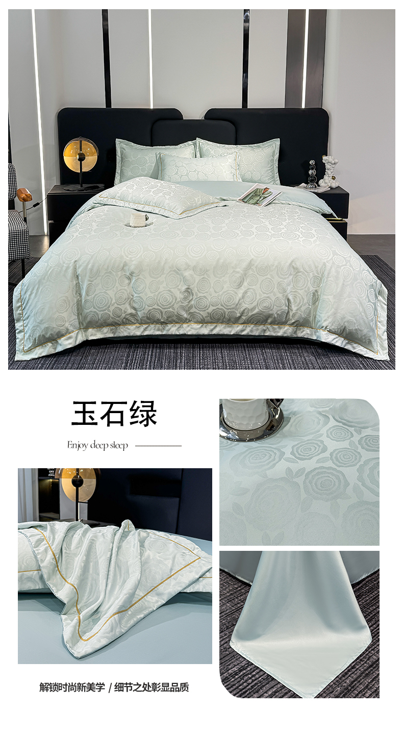 栩裕纺织 2025新款提花宋锦缎四件套 玉石绿
