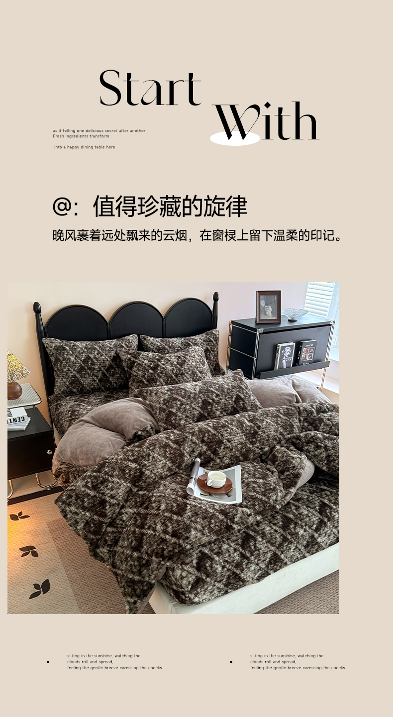商品名称:慕梵家居 2025新款亲肤舒适兔绒床笠款四件套 香绒格调