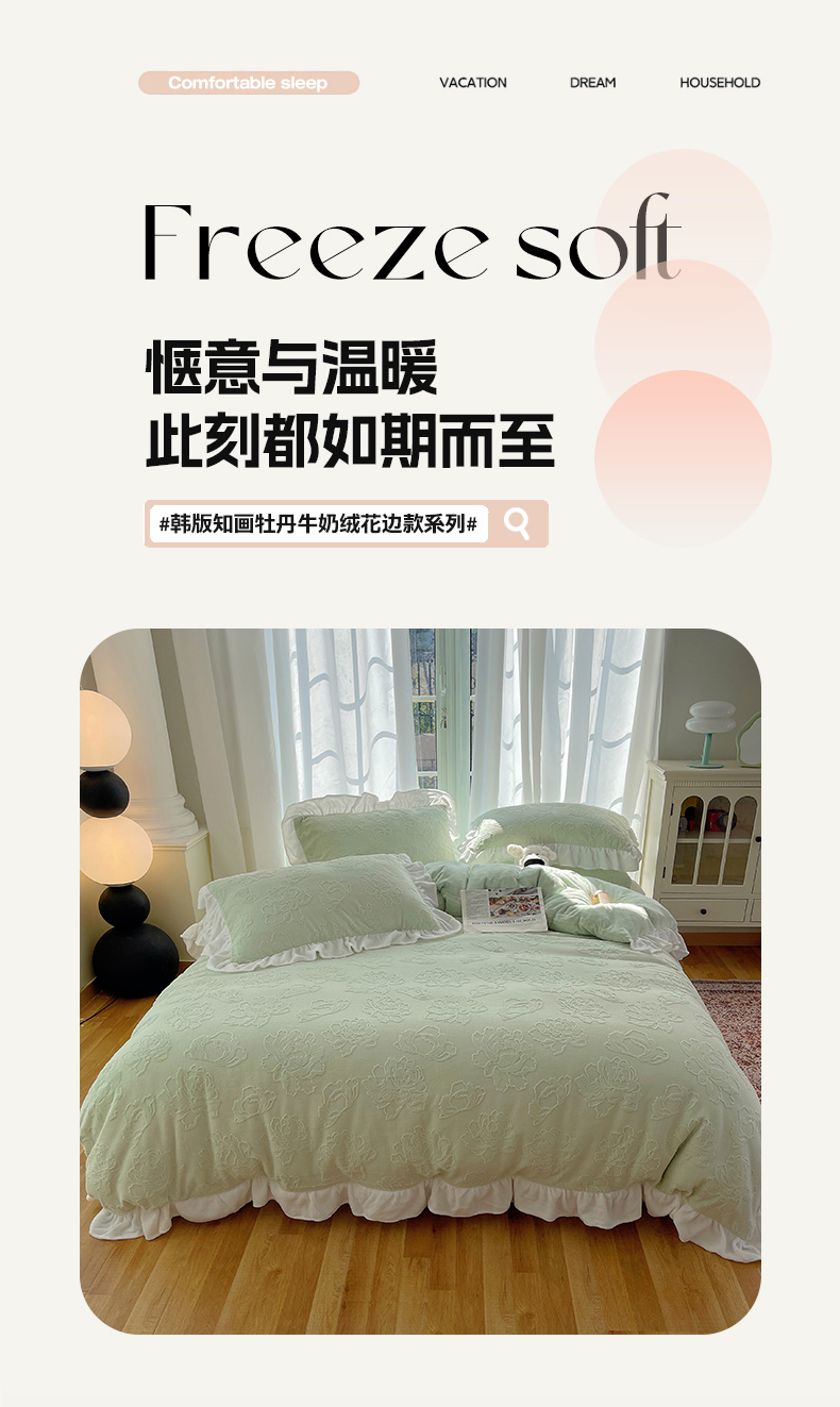 当前位置: 91家纺网 > 商品网购 > 床品套件 > 四件套 > 牛奶绒四件套 > 六巷胡同 2025新款韩版知画牡丹A类牛奶绒花边款四件套 知画牡丹-绿