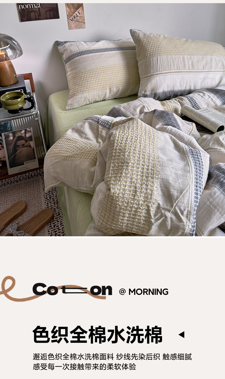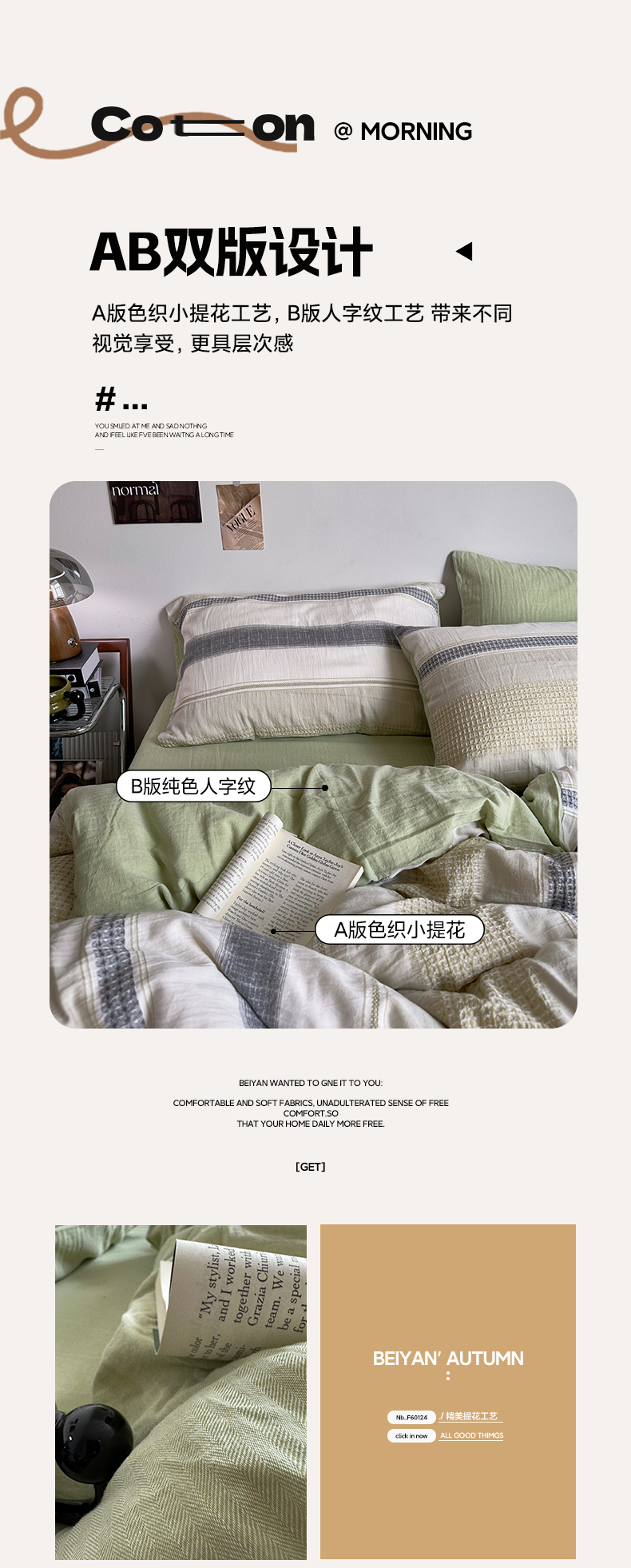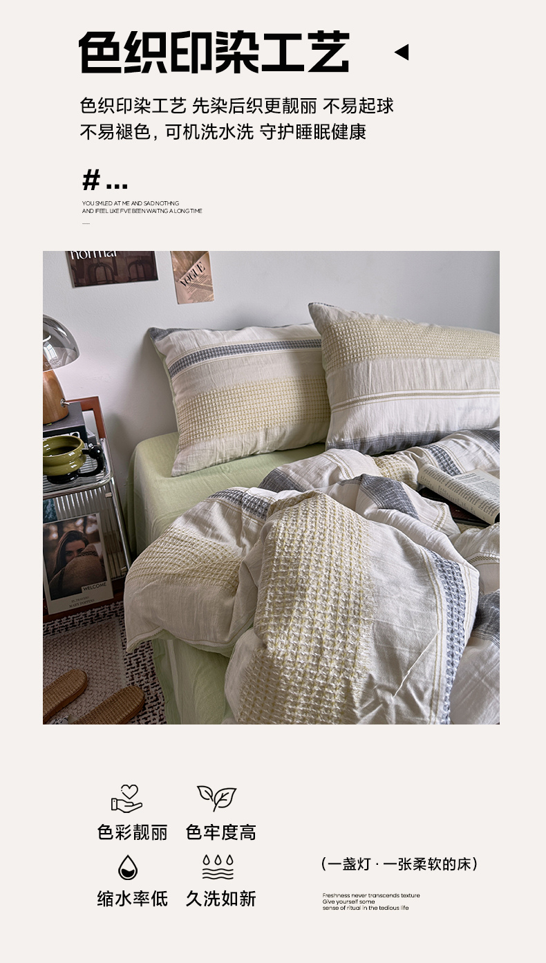 当前位置: 91家纺网 > 商品网购 > 床品套件 > 四件套 > 全棉活性四件套 > 艾咪-Amy ntmy 2025新款全棉色织小提花四件套-絮语 透明PE袋(如需手提无纺布包+5元) 絮语-绿