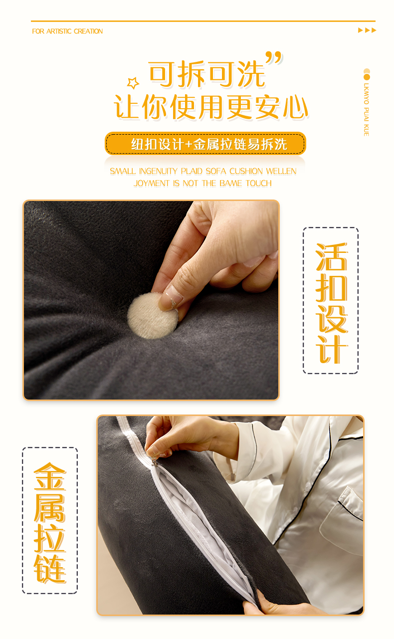 (总)碧尔家居 2025新款简约猫长条机械钉扣水洗棉床头靠枕,米黄,浅蓝,银灰