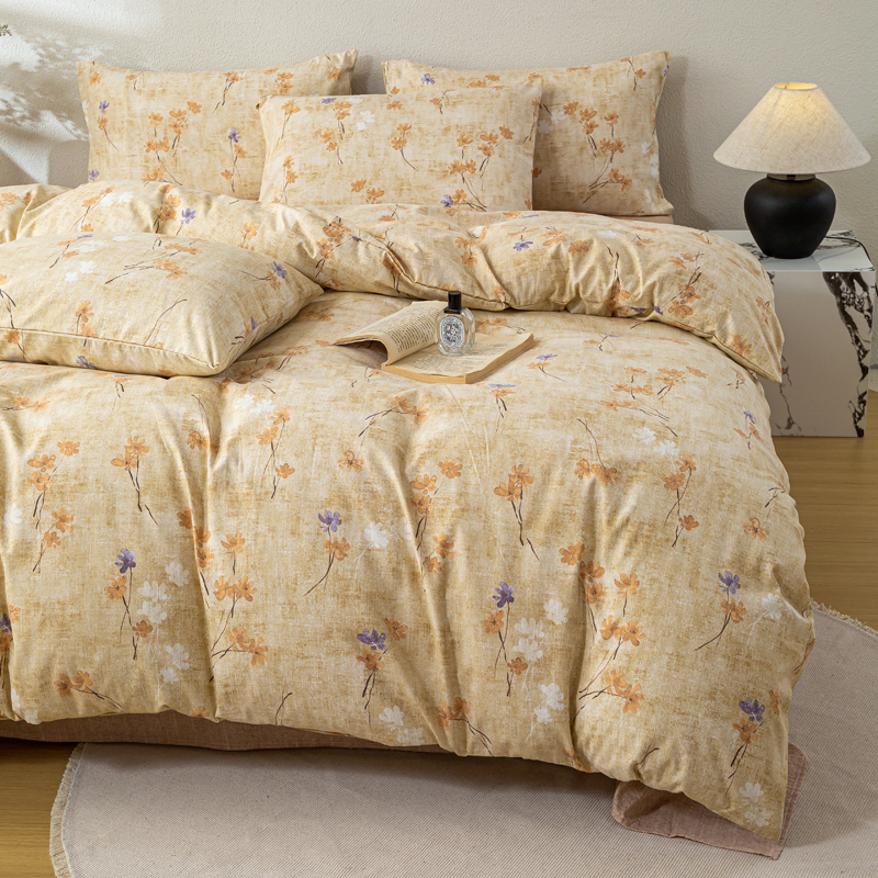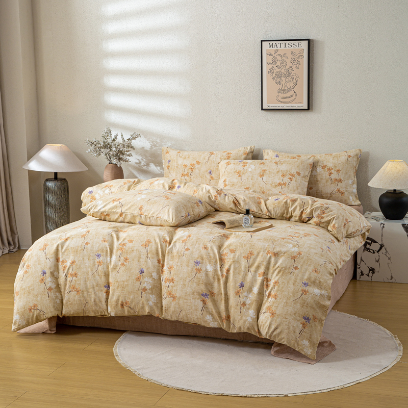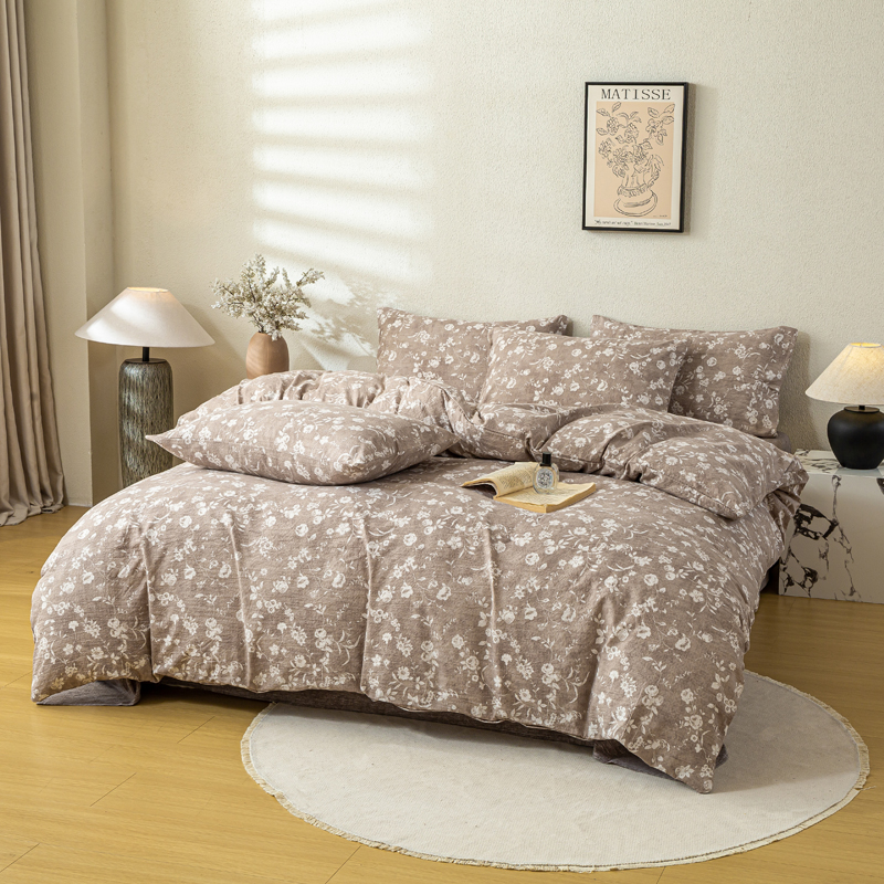 七里香 2025秋冬新品A类加厚高克重原麻复古风亚麻皱皱纱印花四件套 金枝玉叶