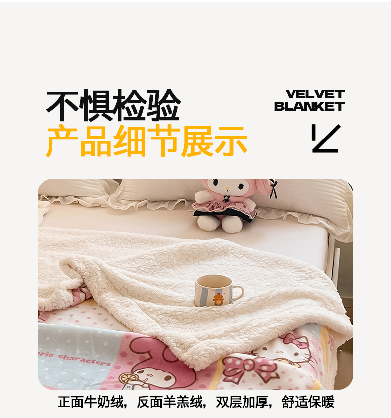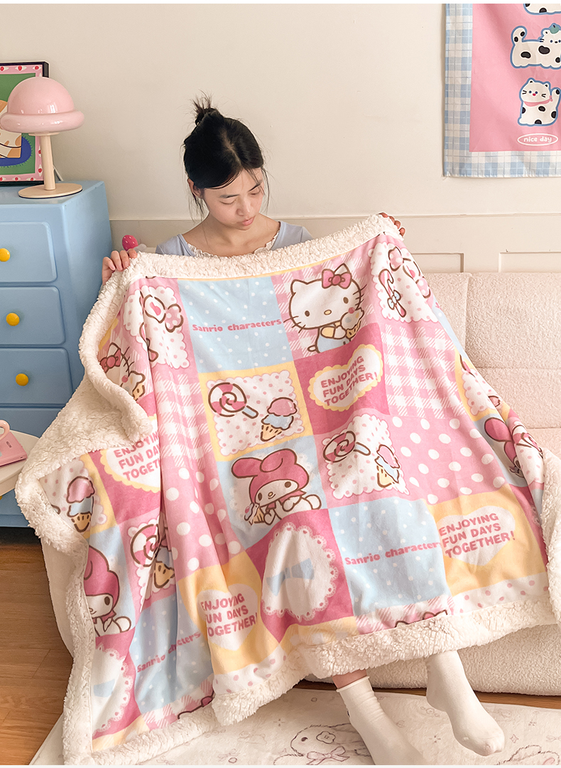 当前位置: 91家纺网 > 商品网购 > 毛毯休闲毯绒毯 > 毛毯 > 金爱家 2025新款A类三丽鸥正版授权少女可爱卡通加厚牛奶绒羊羔绒毛毯多功能四季毛毯毯子 绒毛毯-MT三丽鸥糖果甜心