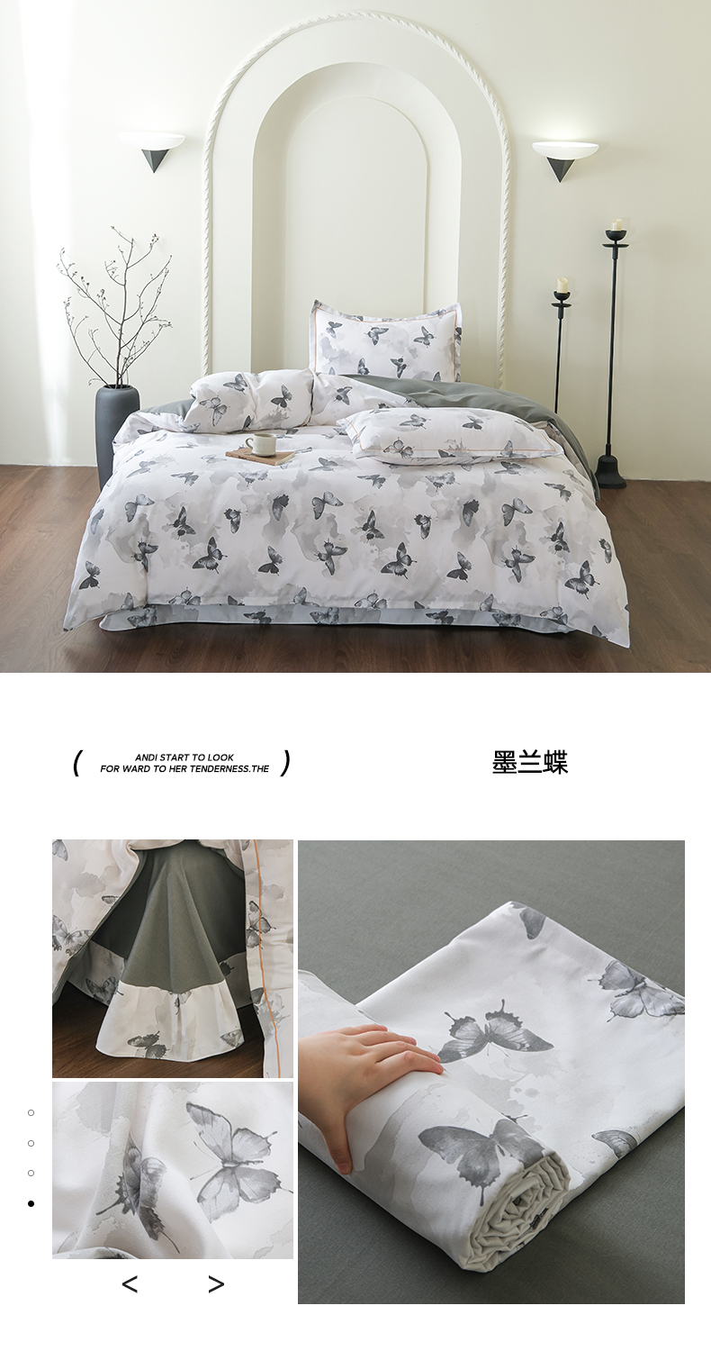 商品名称:慕绸家纺(原萌宝老粗布厂家) 2025秋冬新款加厚纯棉磨毛印花四件套 墨兰蝶