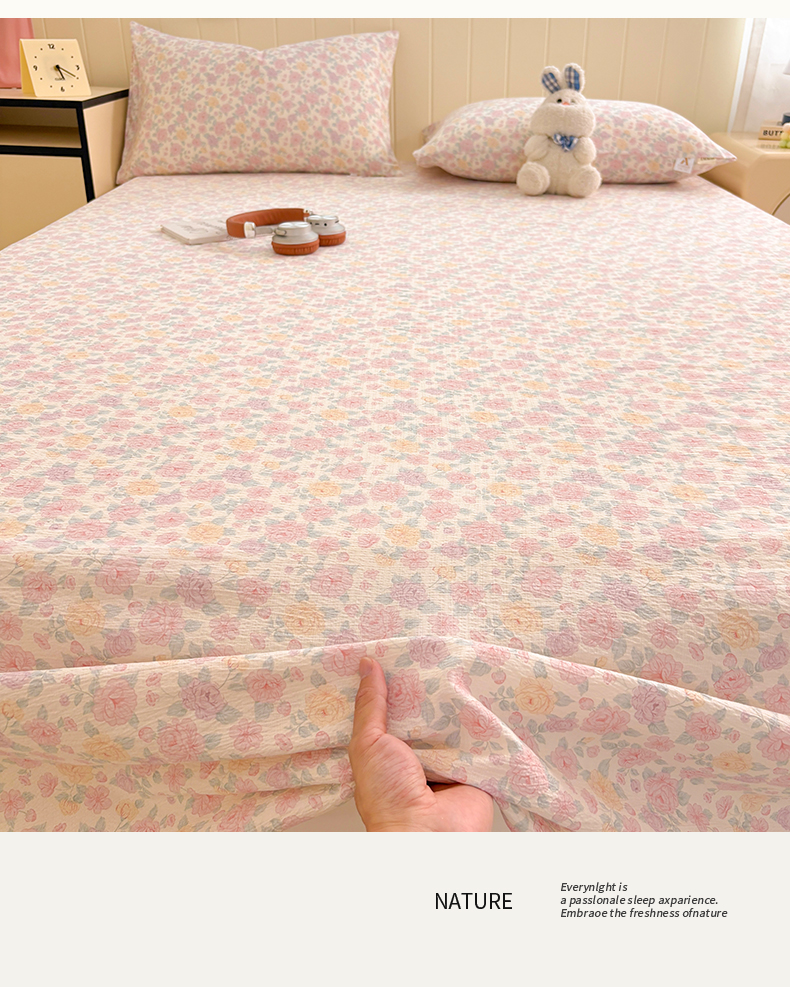 (总)青泽家纺 2025新款双层皱皱纱印花床笠单品床笠单件单床笠,半亩花田,豆蔻年华,芝士奶酪,田园女孩,疏影之心,南瓜派对,萌兔兔,萌宠乐园,梨花落,花轻舞,花间序语,海盐耶耶,乖乖象,格子小狗,花园小兔,半岛红茶