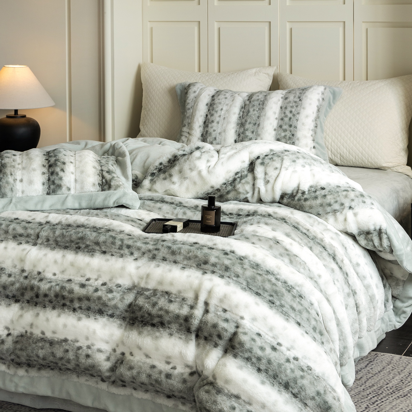 时亿家居 2025新款360g兔毛绒拼接牛奶绒四件套-波点兔毛 波点兔毛-浅绿