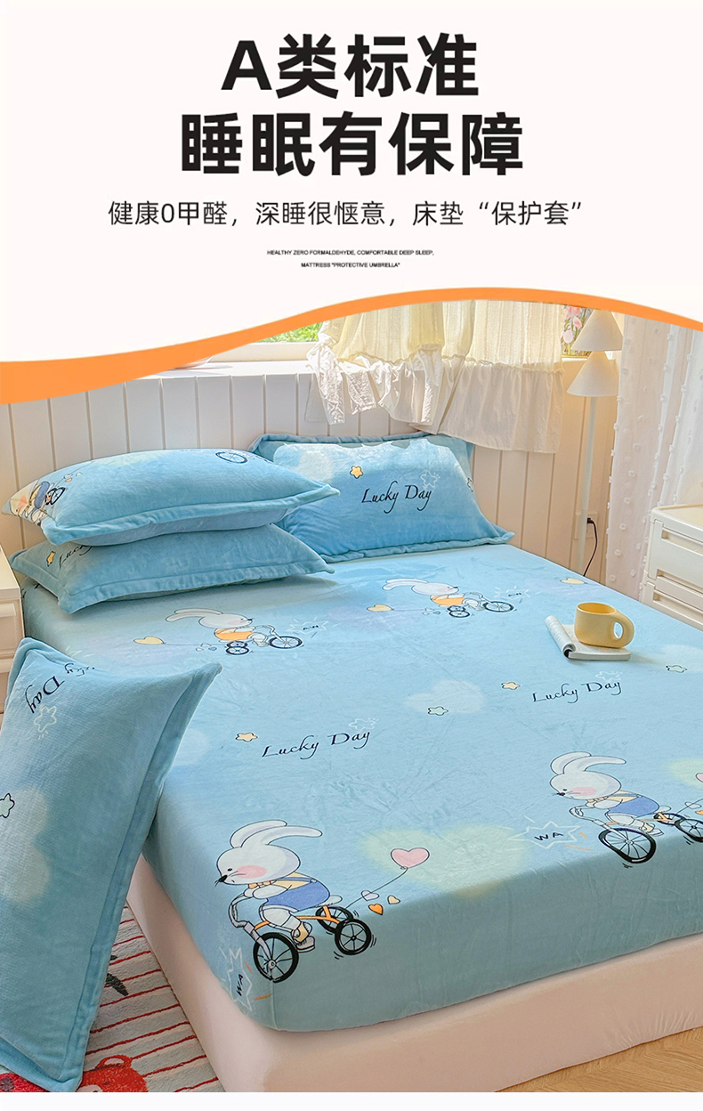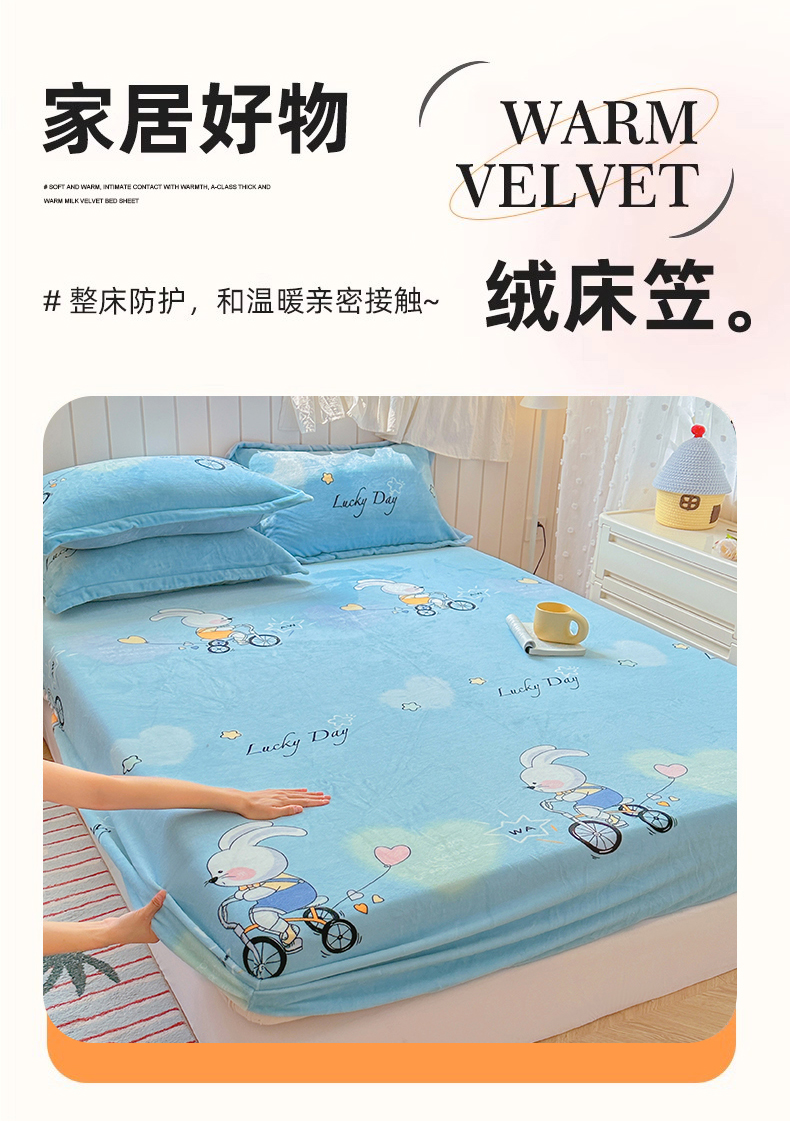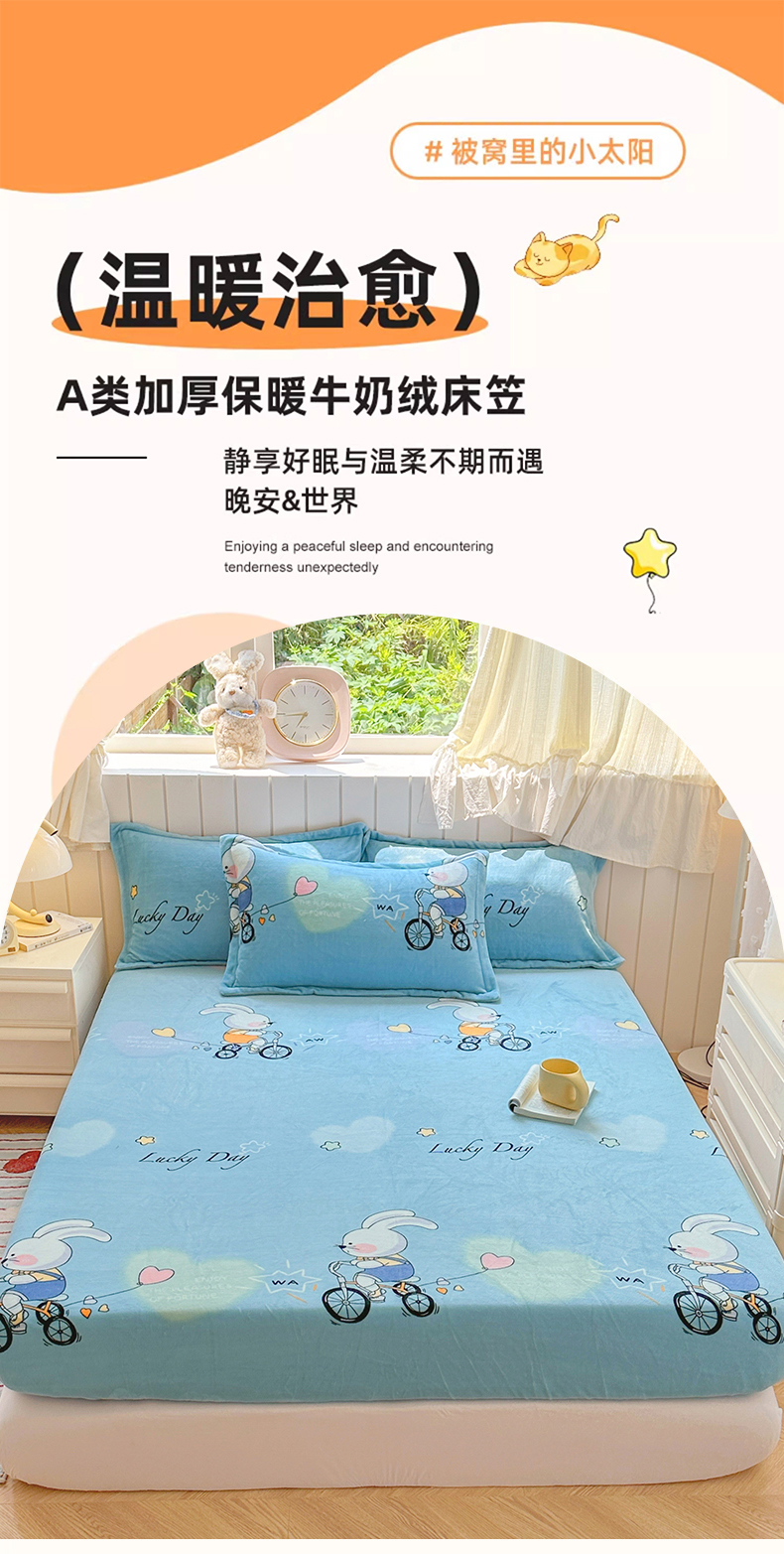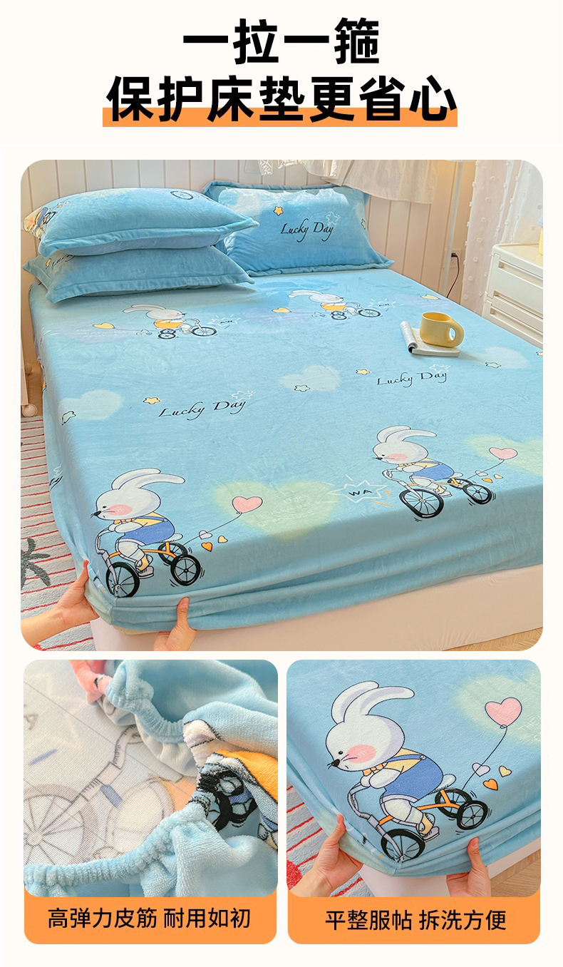 • 91家纺网 家纺一手货源 找家纺 家贝爱 2025新款高克重加厚牛奶绒床笠单床笠床笠单品 哈喽小兔蓝
