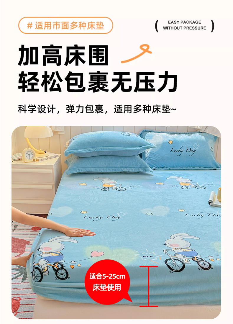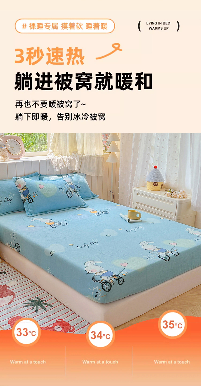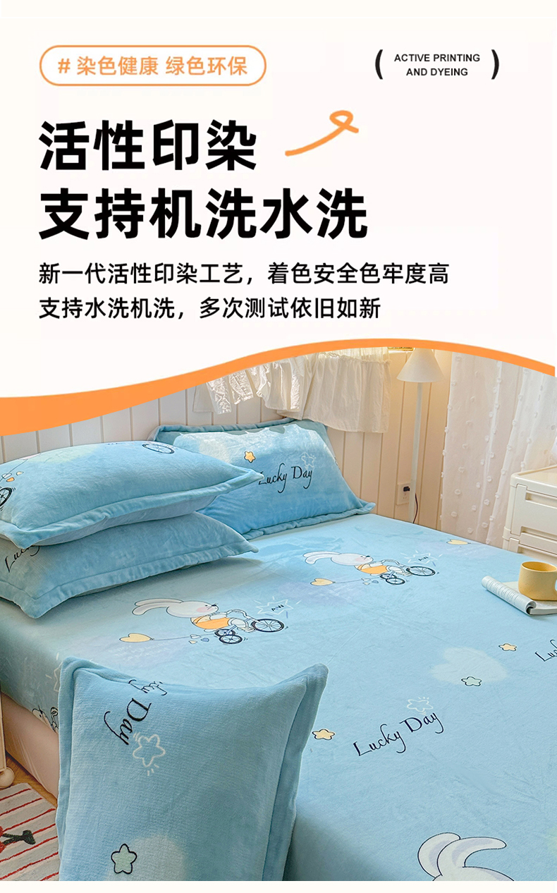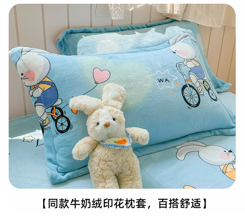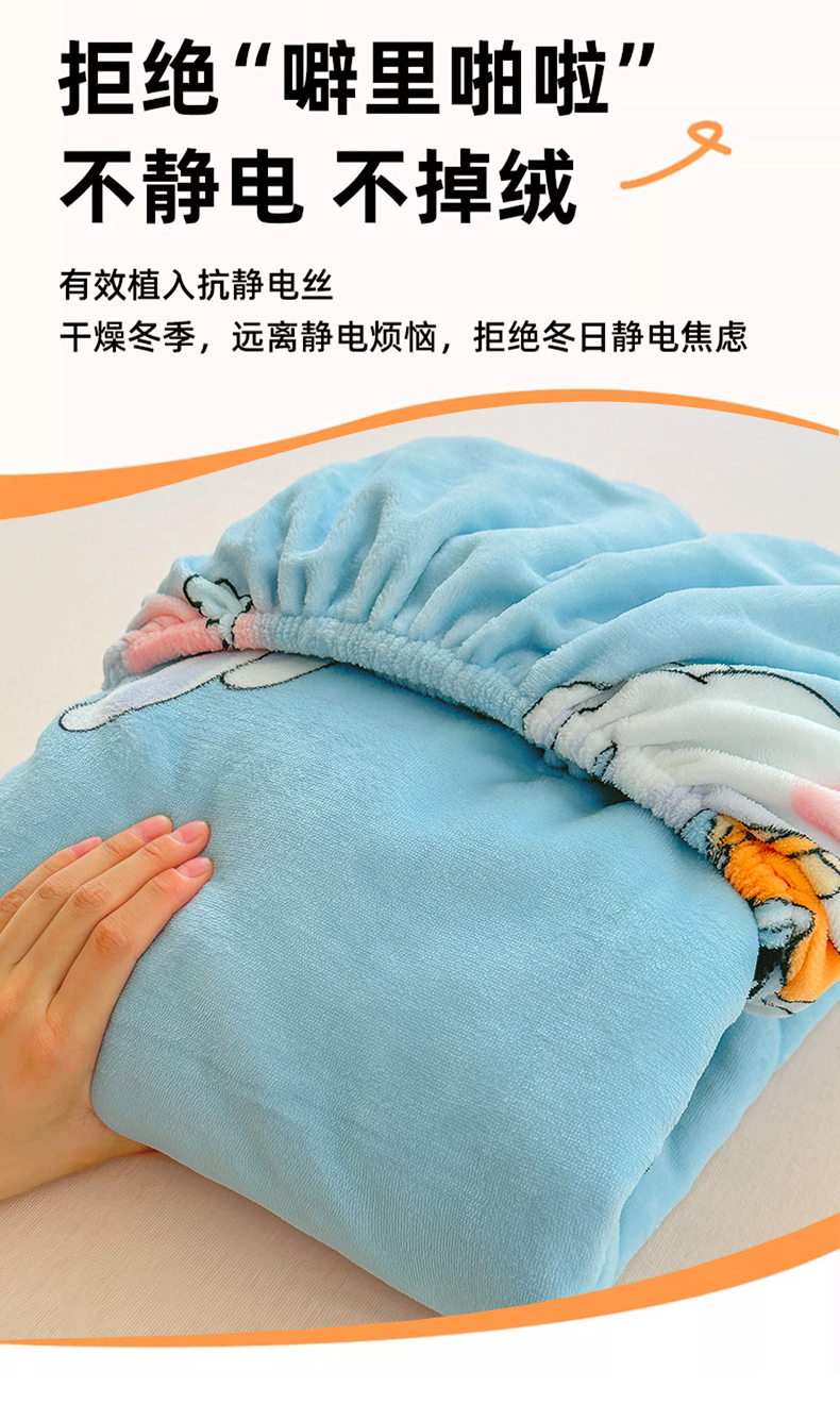 • 91家纺网 家纺一手货源 找家纺 家贝爱 2025新款高克重加厚牛奶绒床笠单床笠床笠单品 哈喽小兔蓝