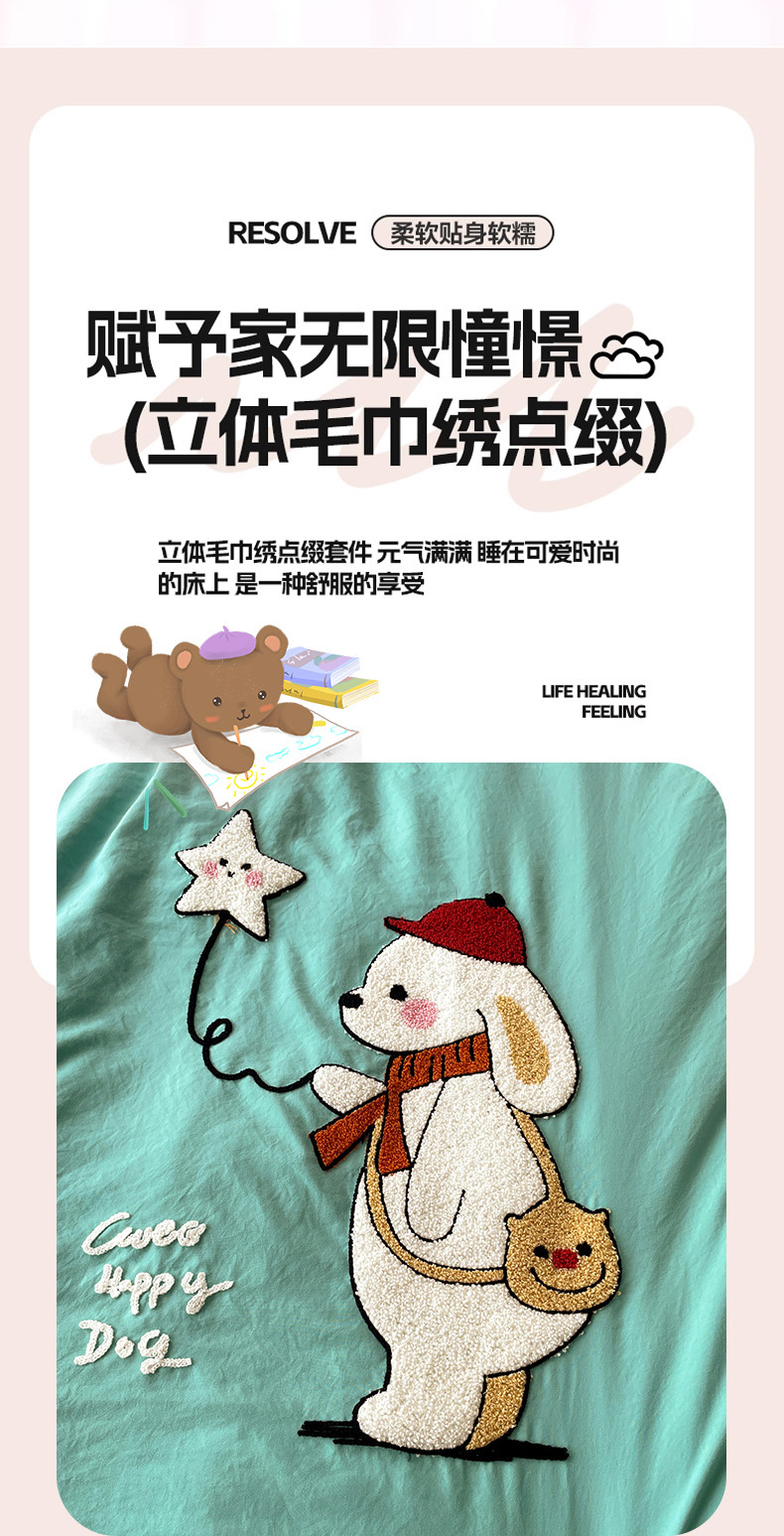 当前位置: 91家纺网 > 商品网购 > 床品套件 > 四件套 > 毛巾绣四件套 > 凯洛奇 2025新款软糯1水洗棉毛巾绣卡通四件套(提供买家秀) 星星与狗