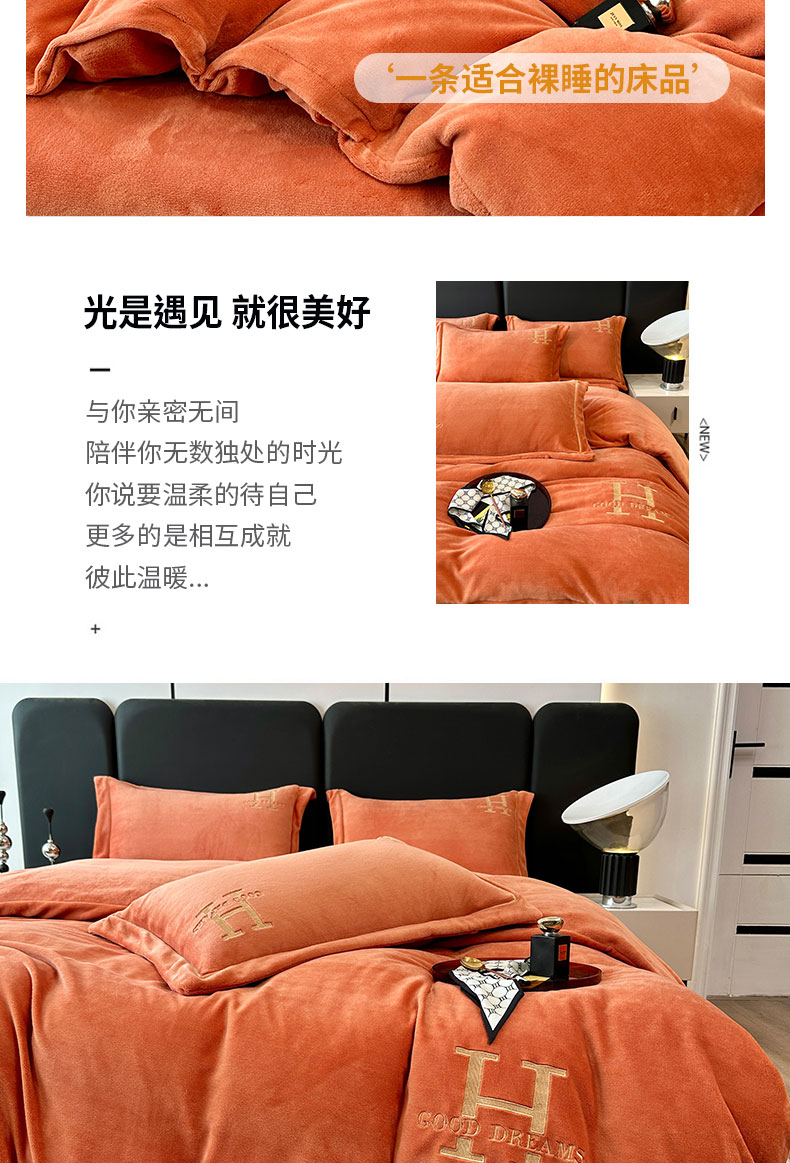 当前位置: 91家纺网 > 商品网购 > 床品套件 > 四件套 > 牛奶绒四件套 > 宇彬家纺 2025新款母婴级牛奶绒婴儿绒刺绣四件套 H-艾玛橙