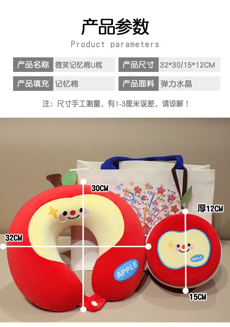 当前位置: 91家纺网 > 商品网购 > 枕头/枕芯/保健枕/颈椎枕 > U型枕 > 仟亿莱 2025新款微笑苹果记忆棉U枕头枕芯 收纳盒15X12cm