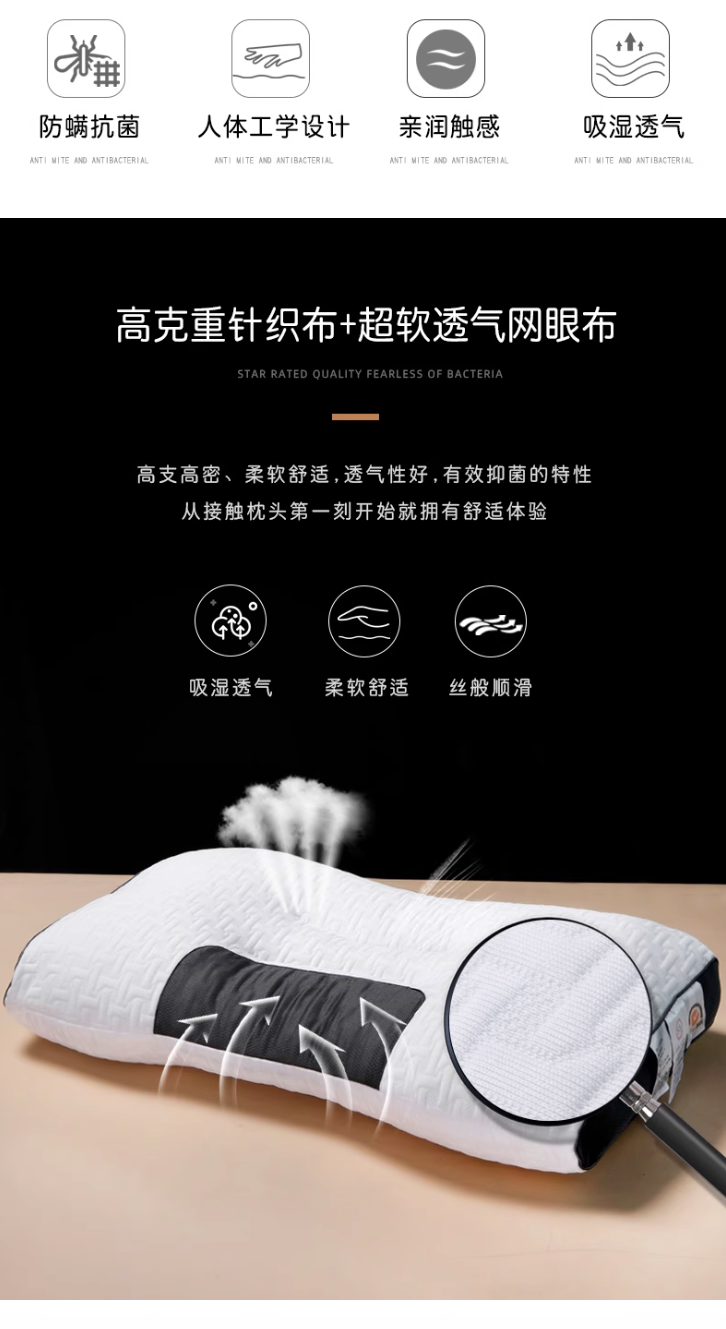商品名称:(总)煌朝家纺 2025新款spa针织棉3D按摩枕助睡眠枕头枕芯
