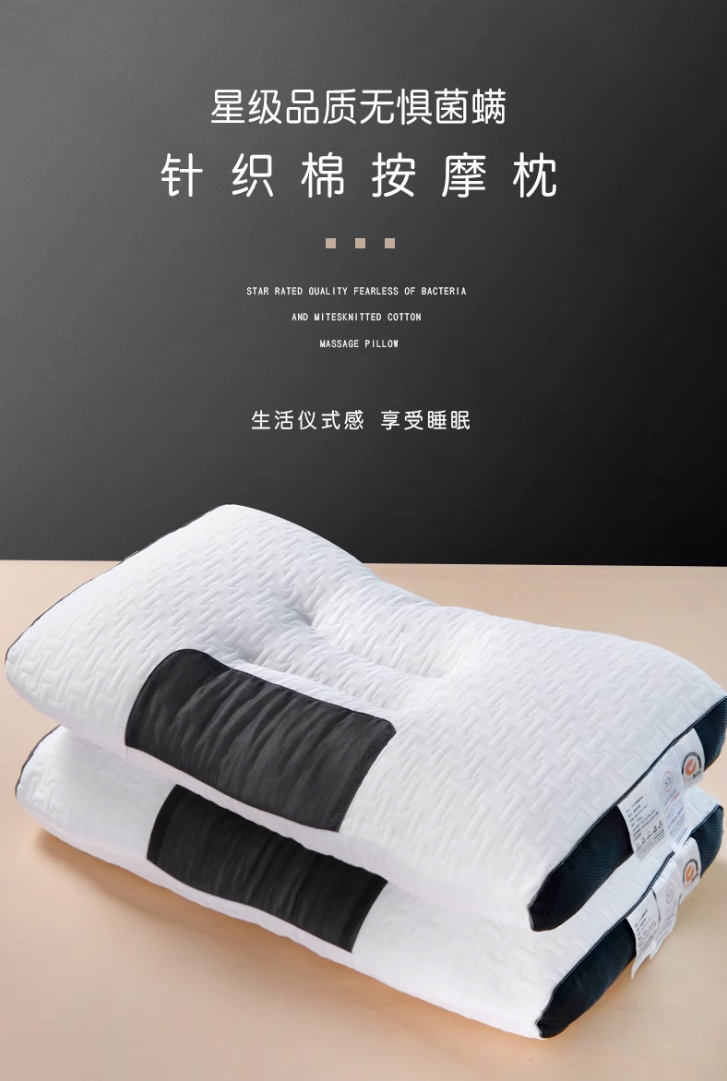 (总)煌朝家纺 2025新款spa针织棉3D按摩枕助睡眠枕头枕芯