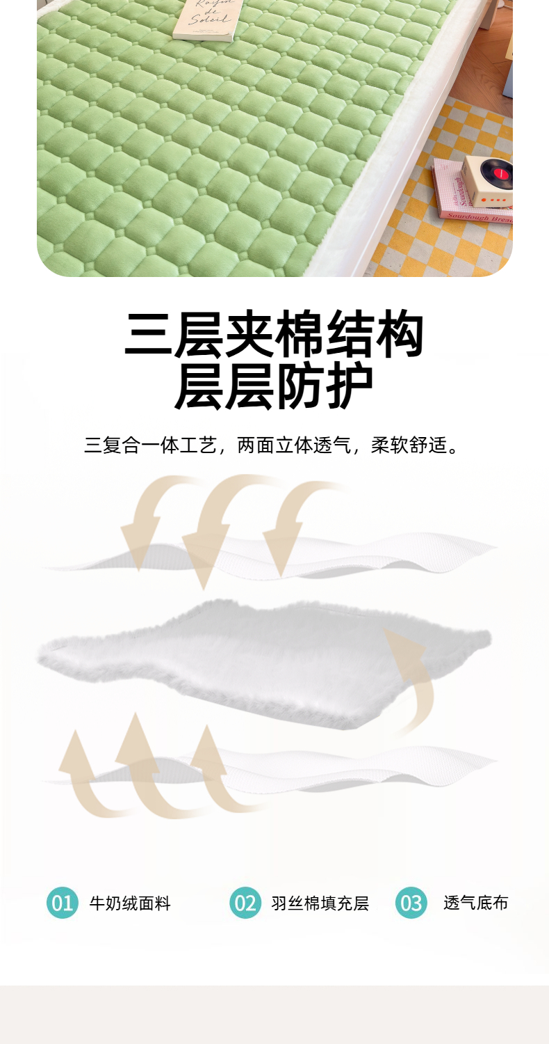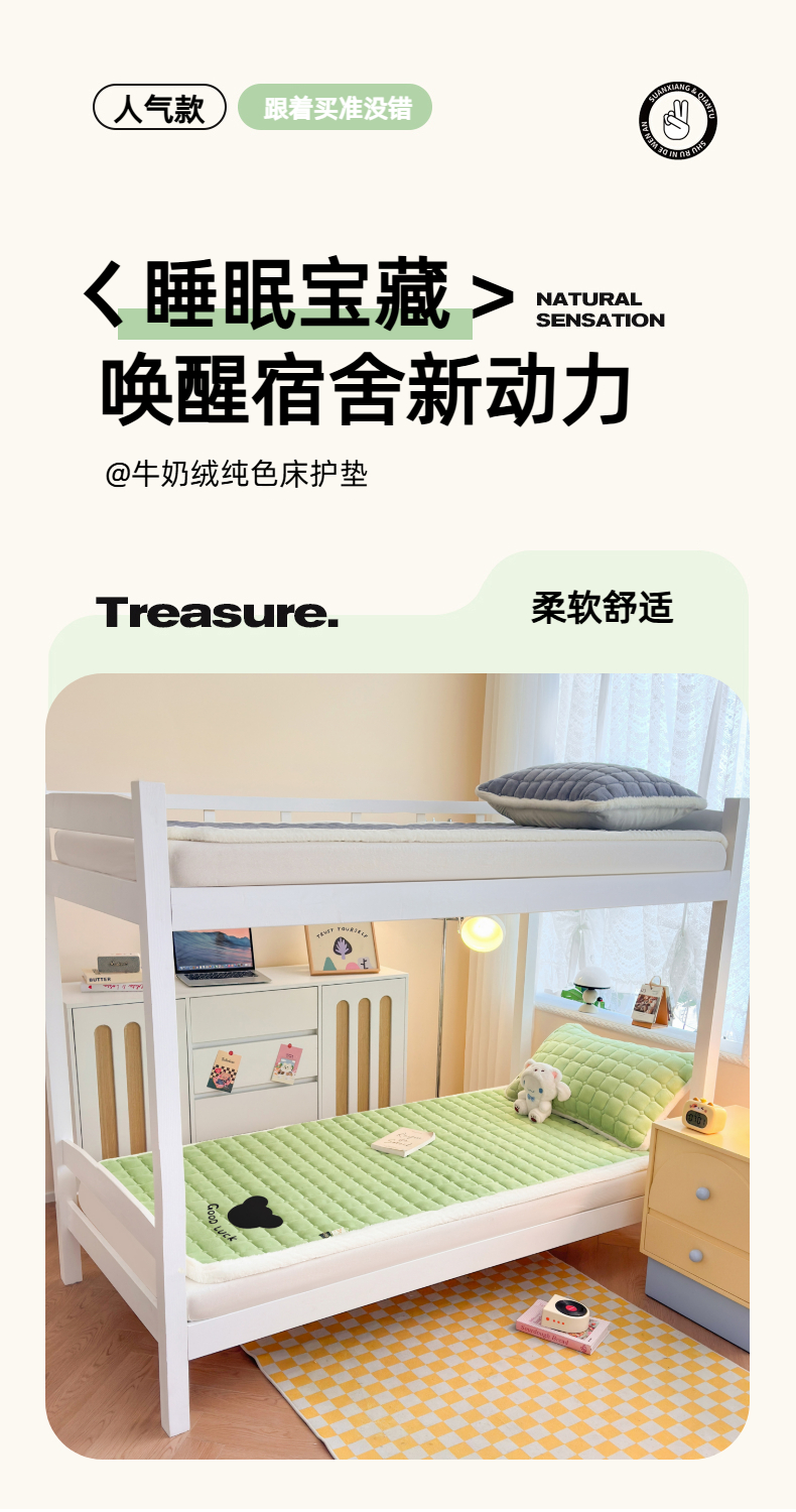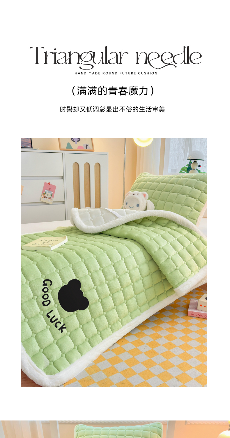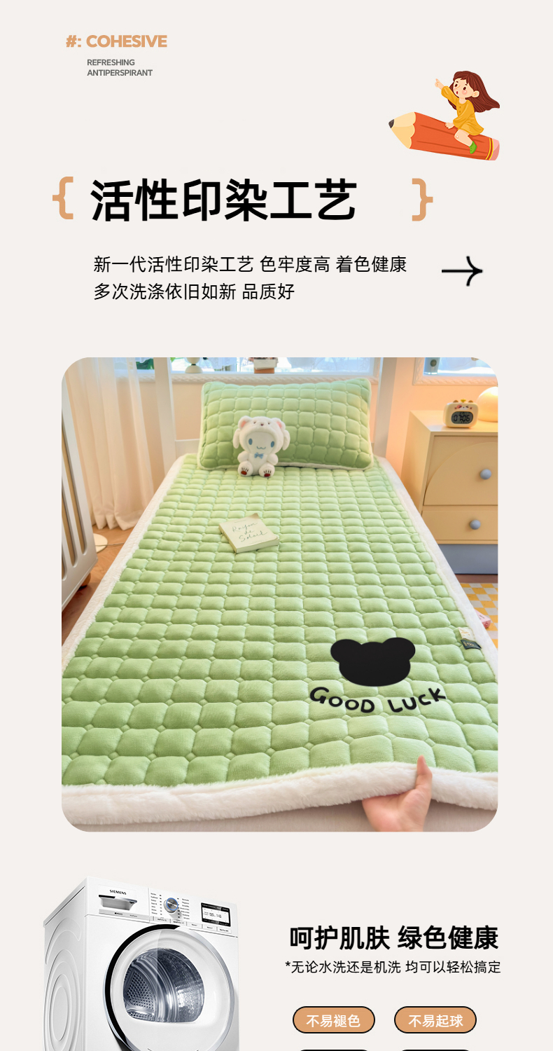 当前位置: 91家纺网 > 商品网购 > 床垫/床褥 > 普通床垫 > 爱屋及屋 2025新款牛奶绒纯色床护垫-好运熊系列 草绿