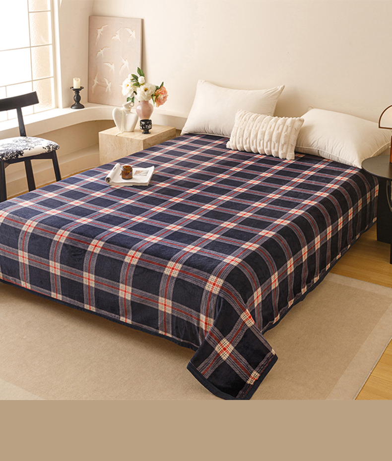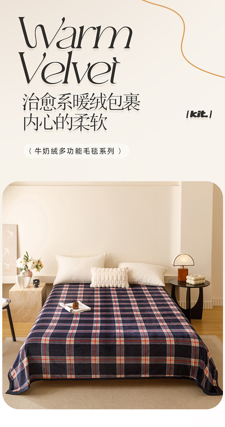 商品名称:悦然毛巾被 2025新款300克印花牛奶绒盖毯休闲毯素色毛毯毯子 流光格蓝