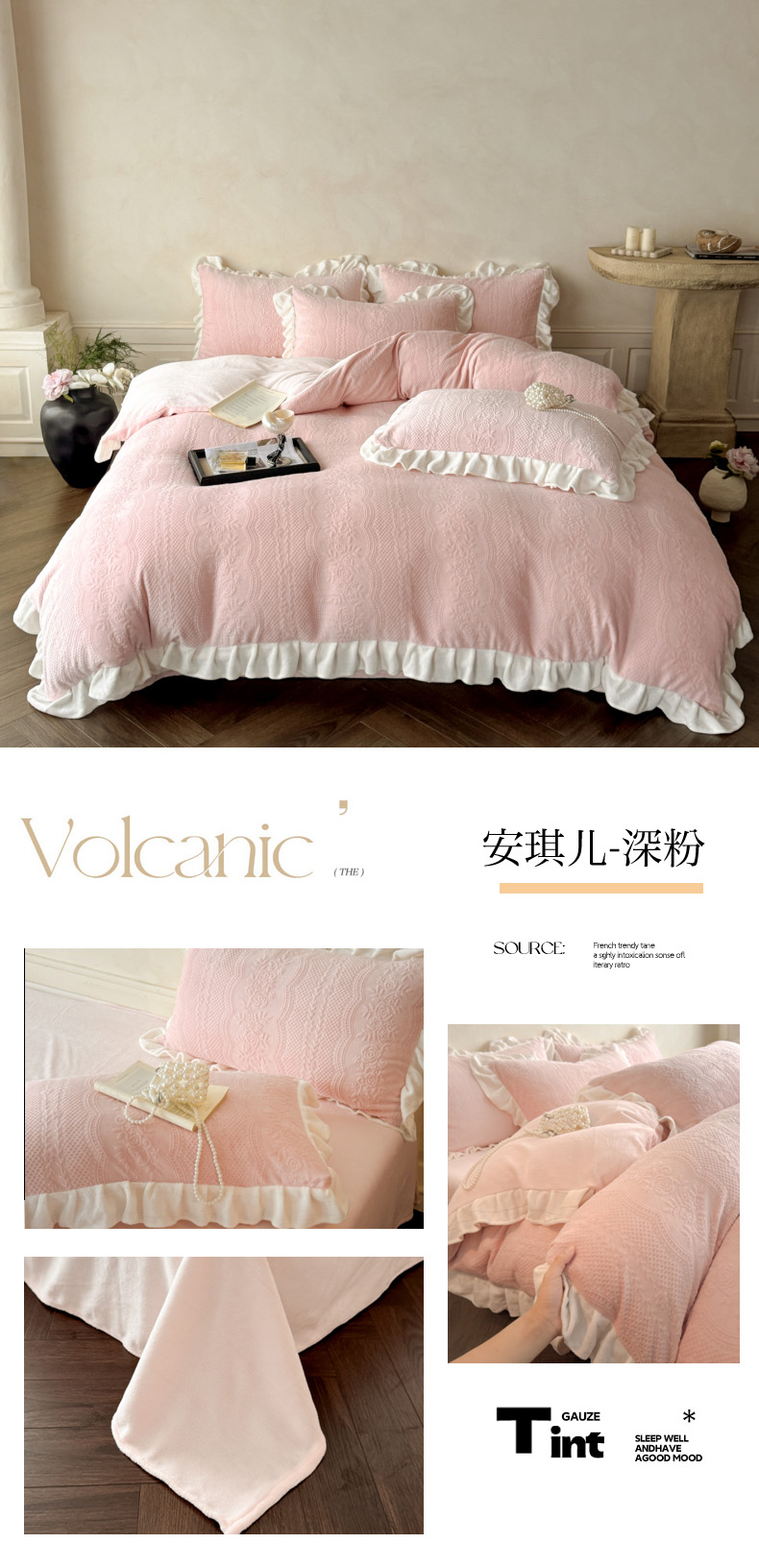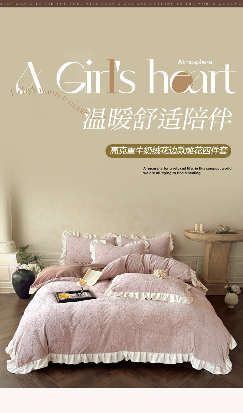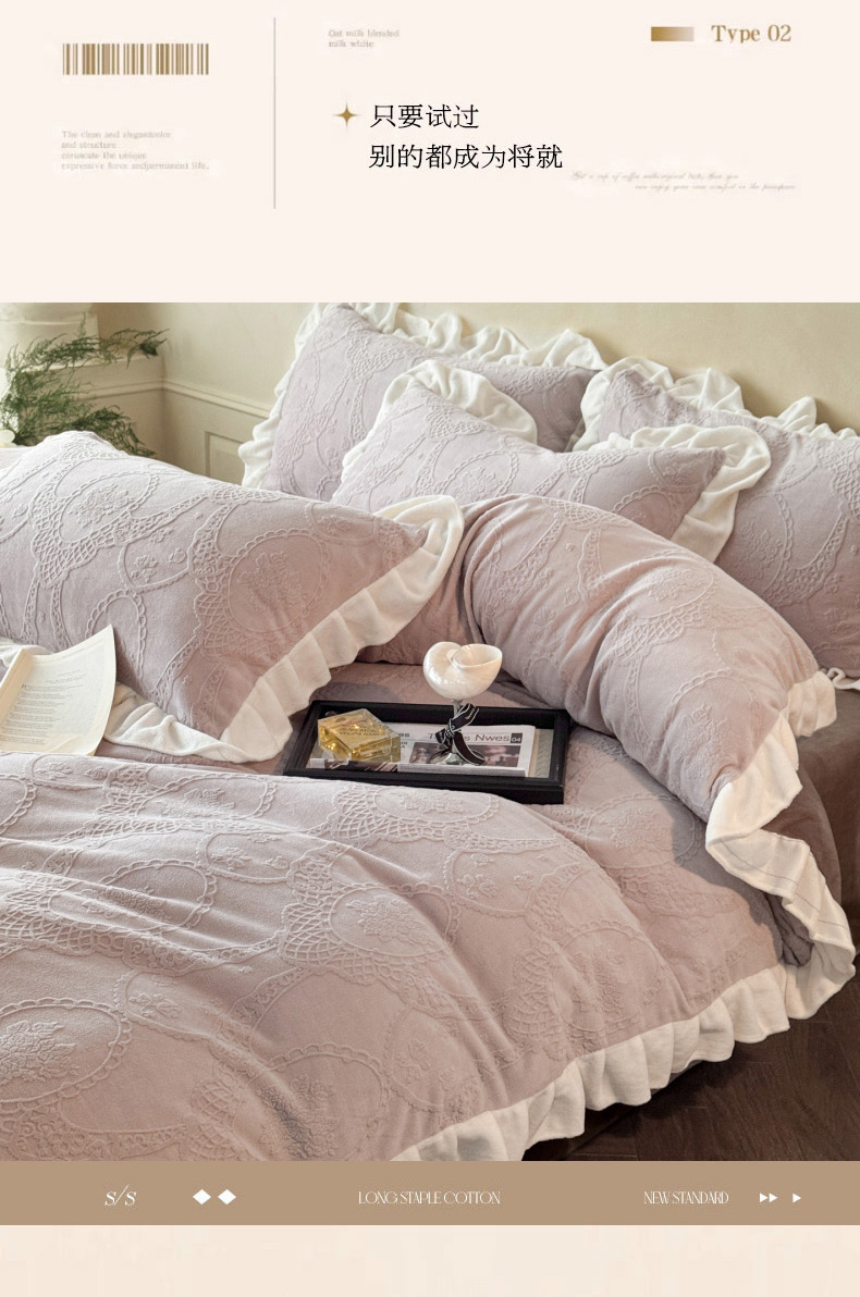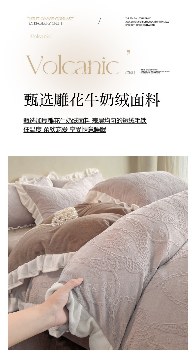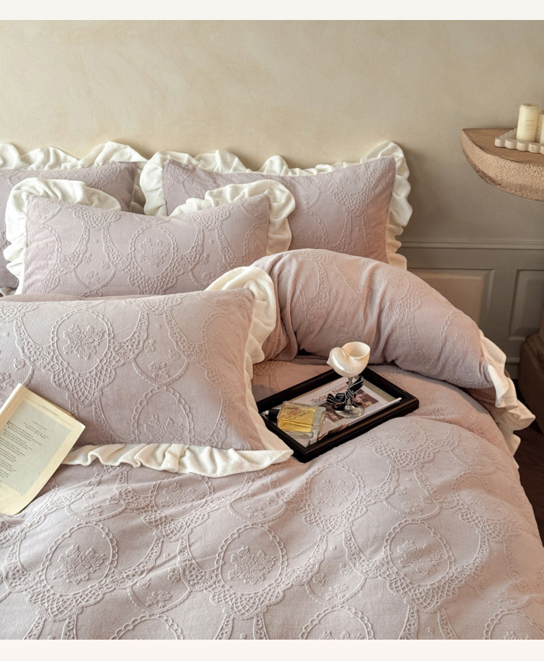 (总)慕澄家纺 2025新款高克重牛奶绒花边款雕花四件套