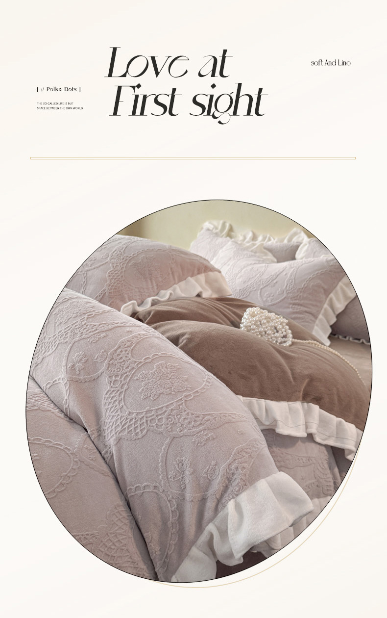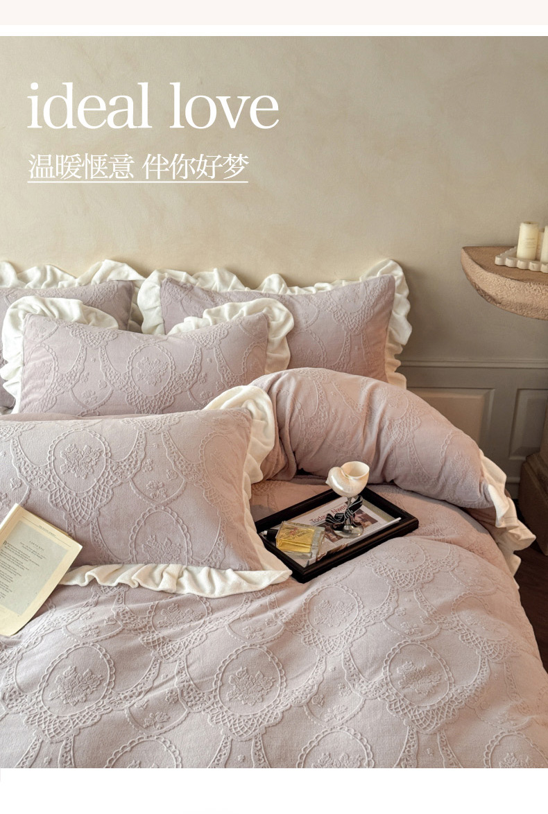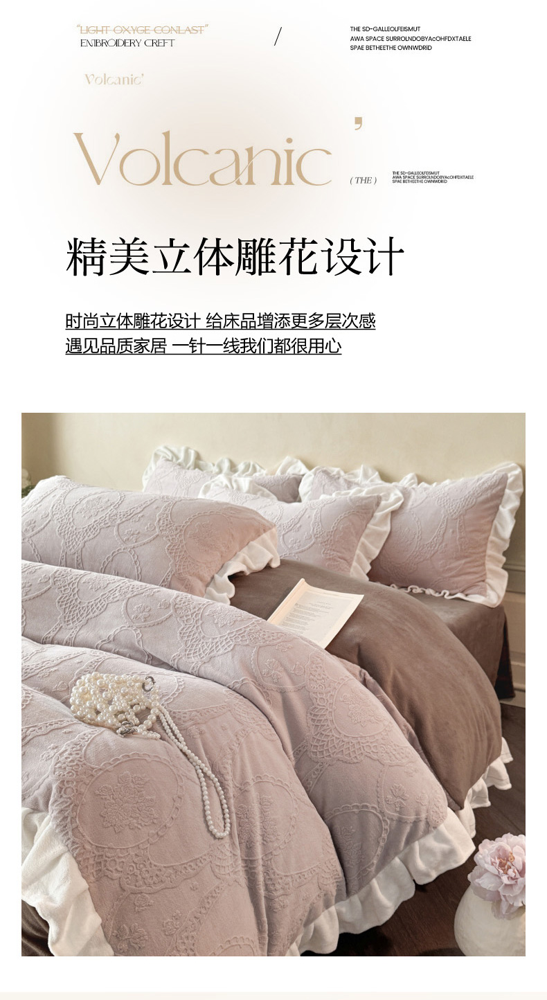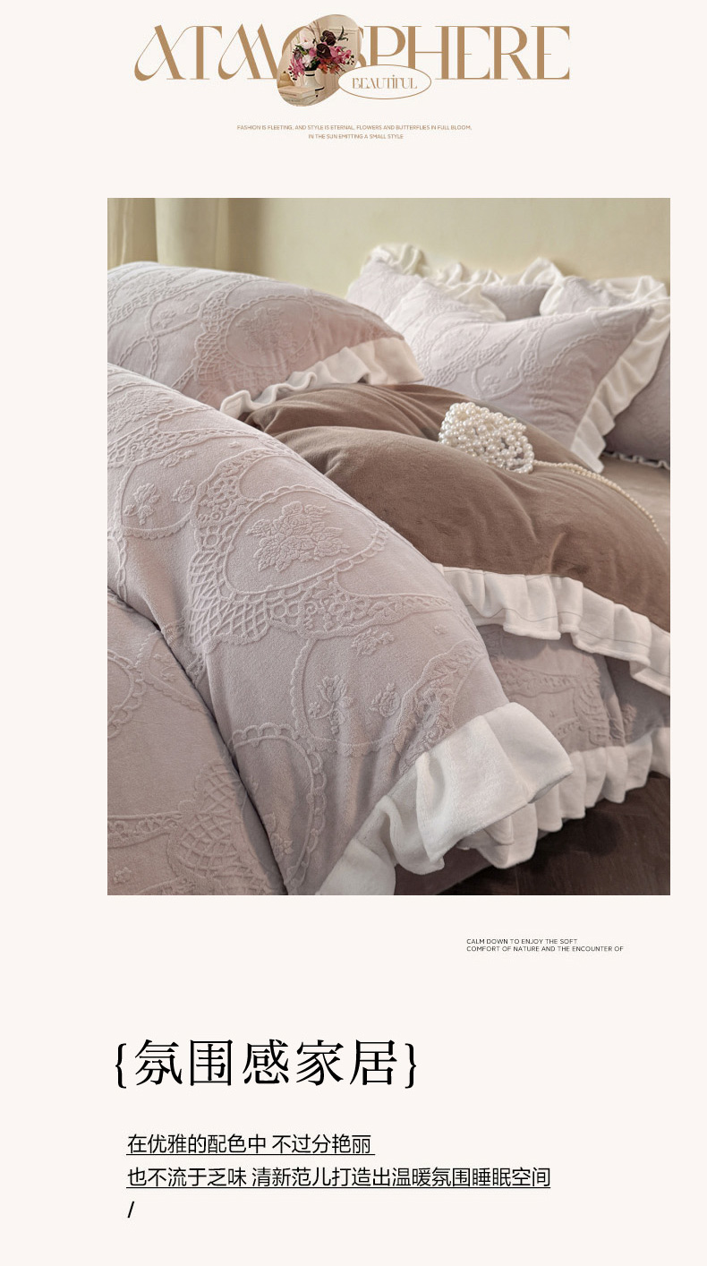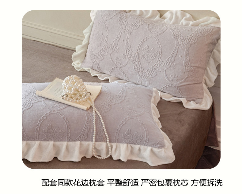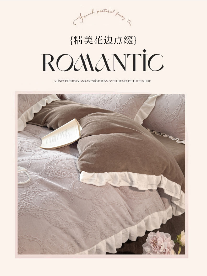 商品名称:(总)慕澄家纺 2025新款高克重牛奶绒花边款雕花四件套