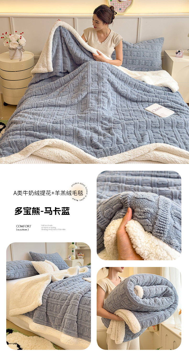 (总)世纪绒品 2025新款A类立体牛奶绒雕花绒单层毛毯毯子-多宝熊,多宝熊 马卡蓝,多宝熊 果绿,多宝熊 月牙白,多宝熊 太空灰,多宝熊 卡其,多宝熊 豆沙粉