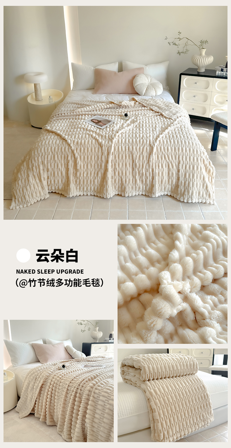 (总)穆琪 2025新款高克重竹节绒毛毯兔毛绒办公家用多功能毯子,薄暮灰,奶茶棕,青竹绿,晴山蓝,珊瑚粉,云朵白