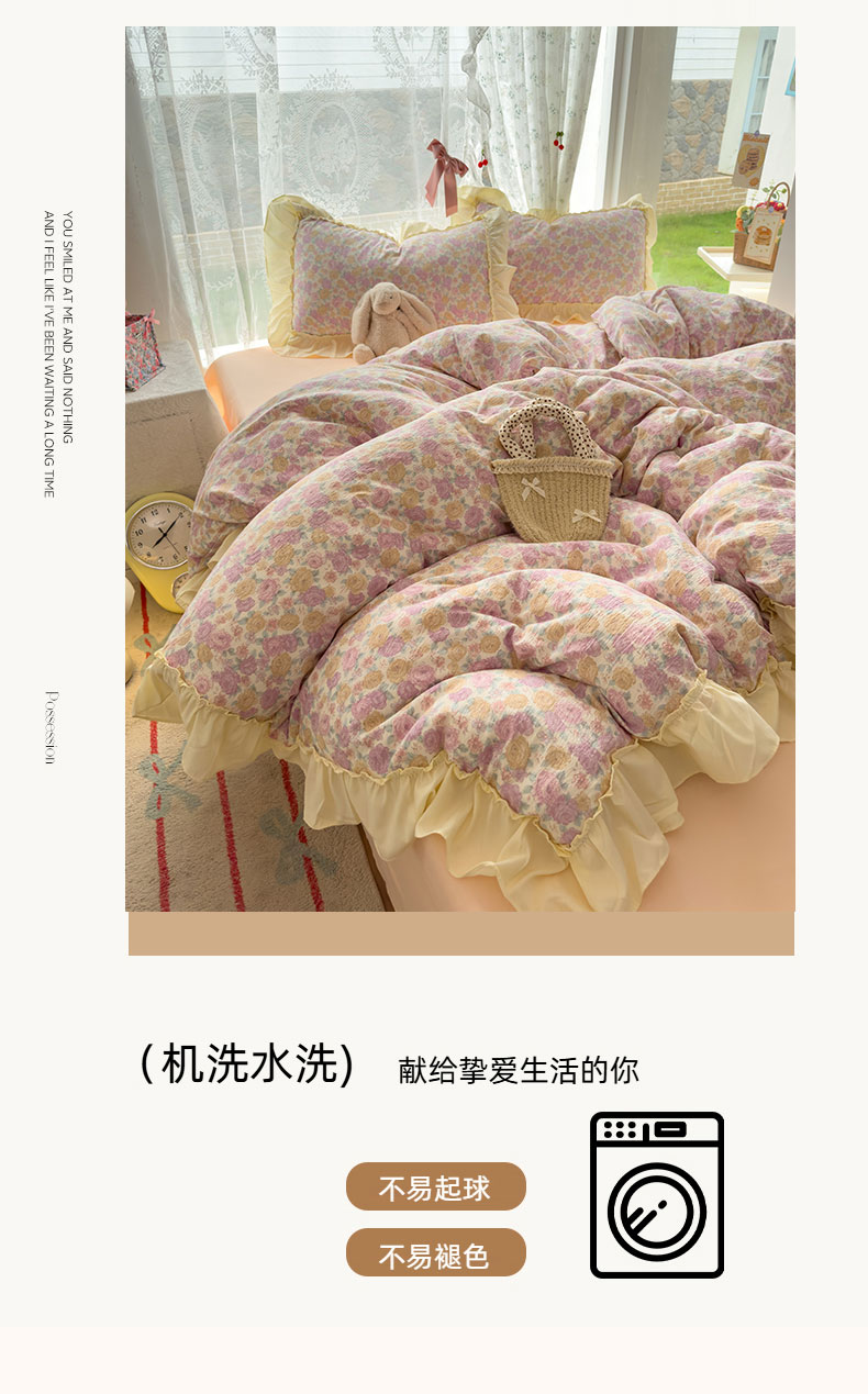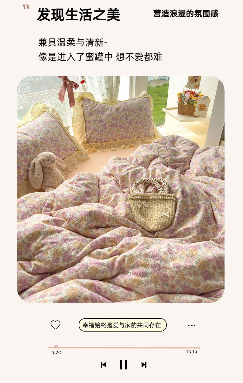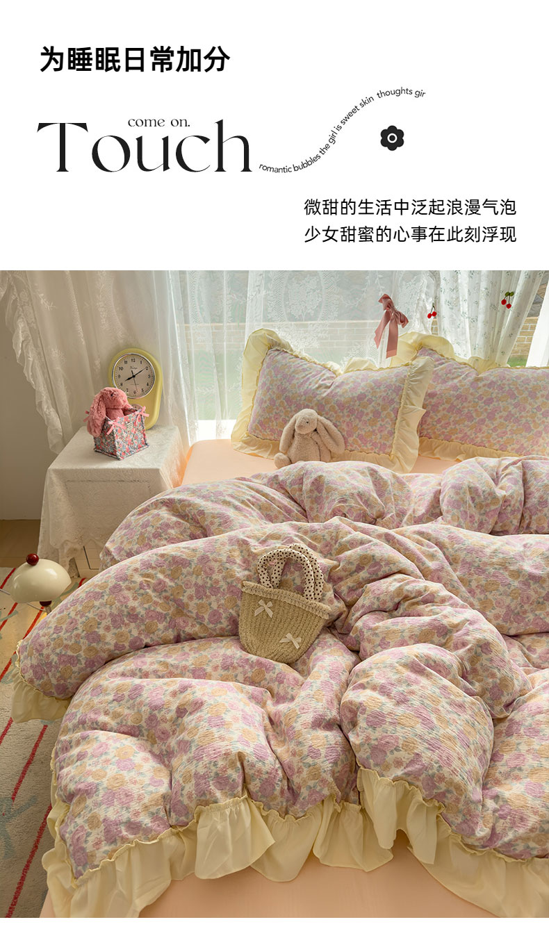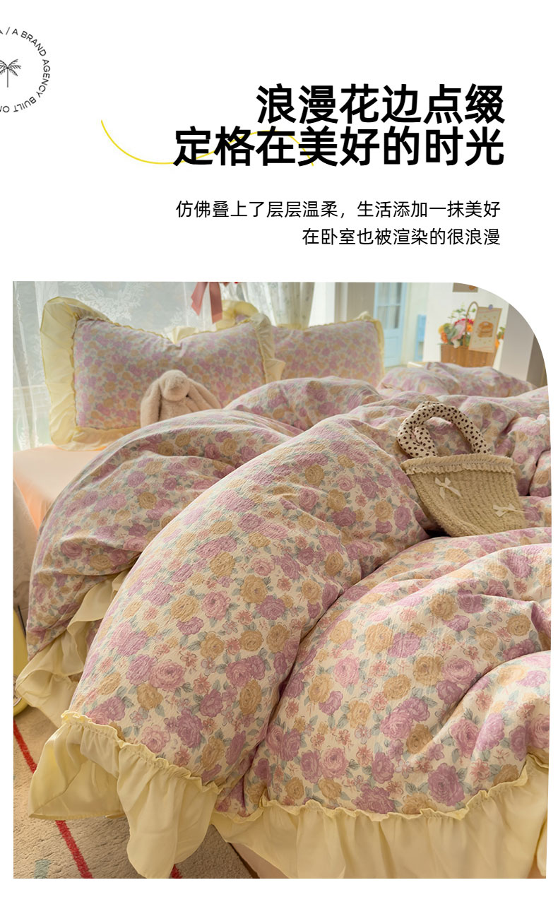当前位置: 91家纺网 > 商品网购 > 床品套件 > 四件套 > 双层纱四件套 > 思诺羽床笠 2025新款开学季法式花边A类双层纱木棉四件套 花漾