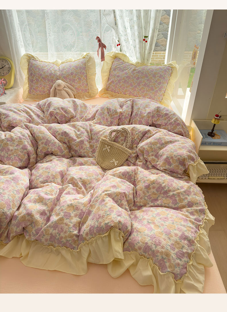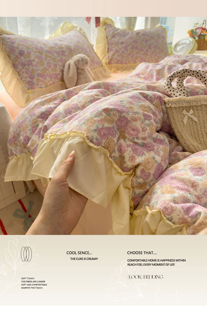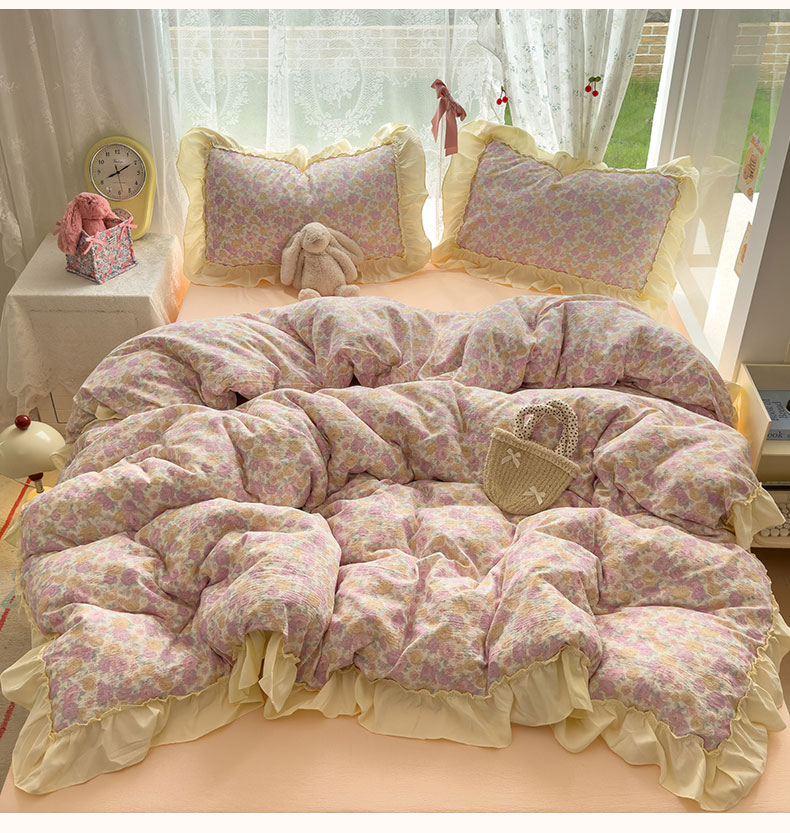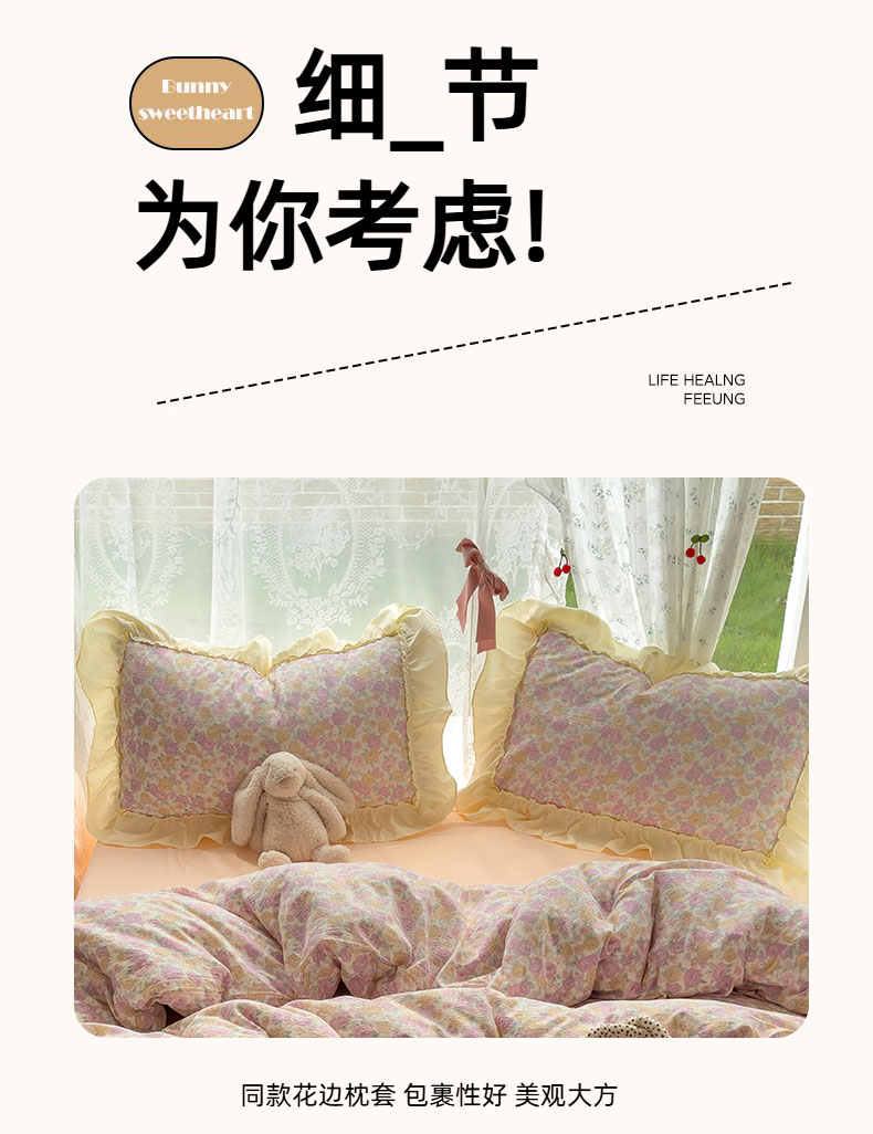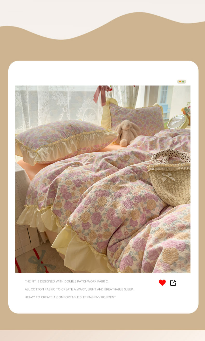 当前位置: 91家纺网 > 商品网购 > 床品套件 > 四件套 > 双层纱四件套 > 思诺羽床笠 2025新款开学季法式花边A类双层纱木棉四件套 花漾