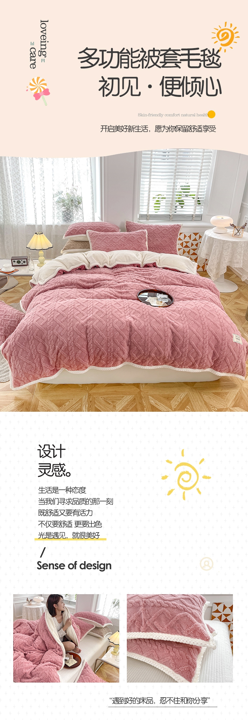 商品名称:雅诗帛 冬季加绒四件套云朵绒法莱绒牛奶绒雕花绒水晶绒塔芙绒毛毯学生宿舍保暖加绒加厚珊瑚绒双面绒 桃粉