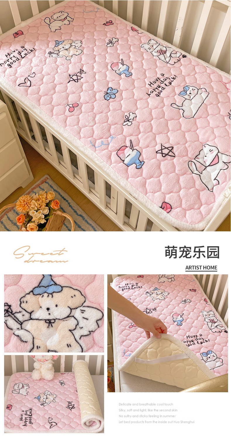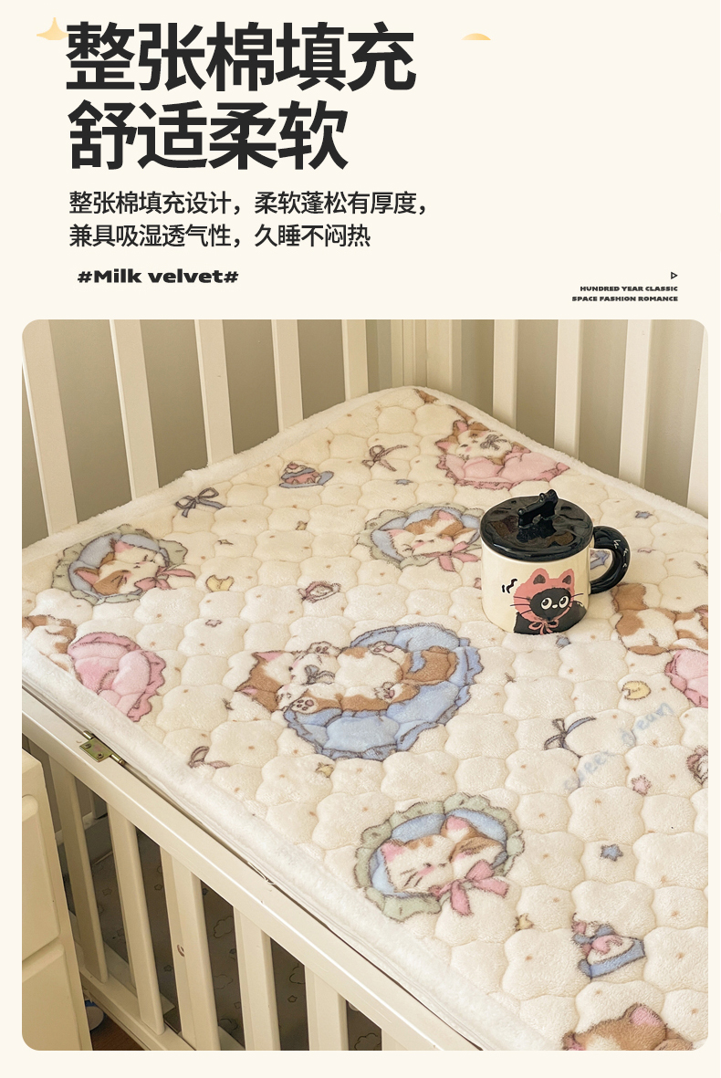 (总)富馨莱 2025新款牛奶绒夹棉床垫床盖支持一件定制,飞行太空,格子熊猫,孔雀蓝,恐龙伙伴,抹茶绿,七彩草莓,轻奢白,轻奢灰,小精灵,小柯基,樱桃兔,脏脏熊,组合图