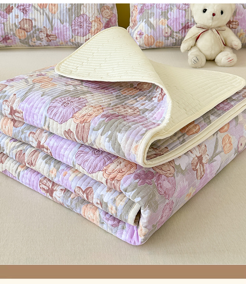 寐居家纺 2025新款A类数码印花老粗布夹棉床盖 紫蔓花踪