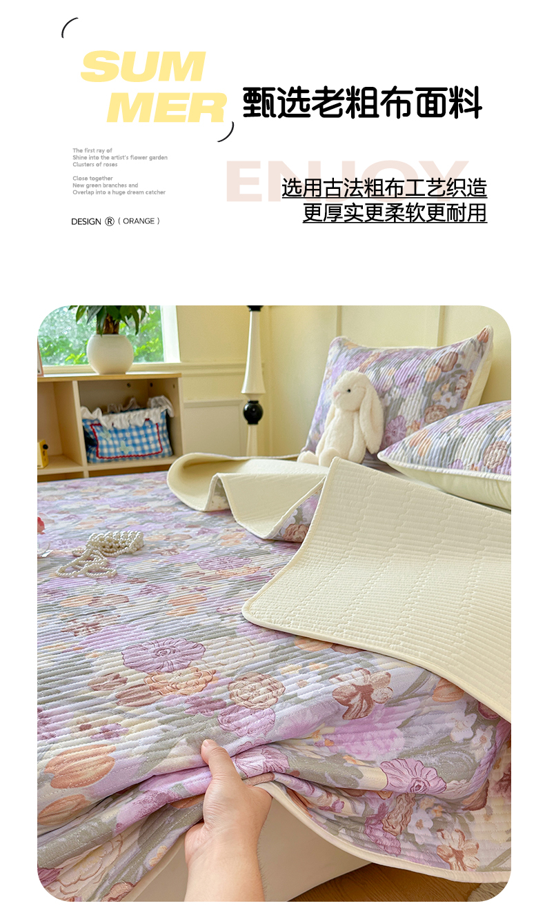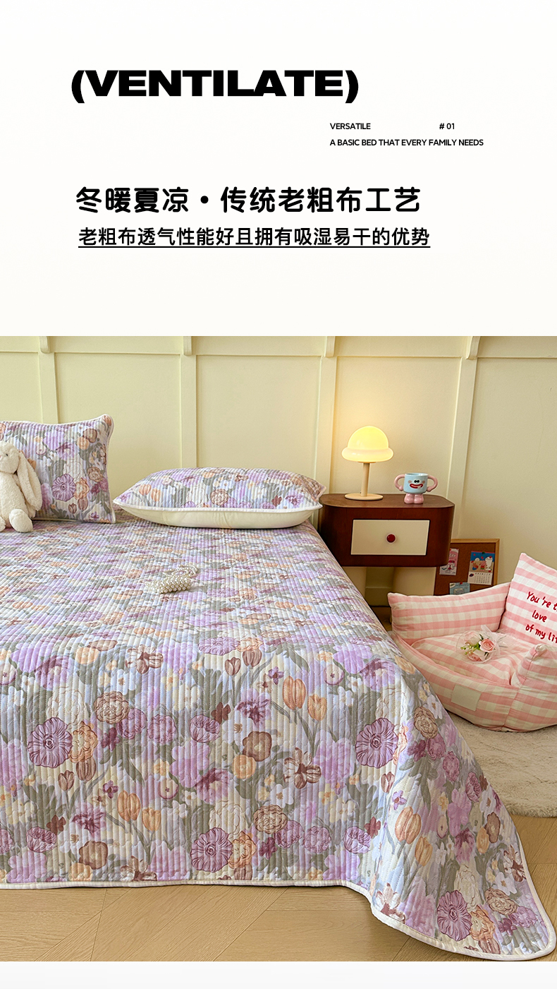 • 91家纺网 家纺一手货源 找家纺 寐居家纺 2025新款A类数码印花老粗布夹棉床盖 紫蔓花踪