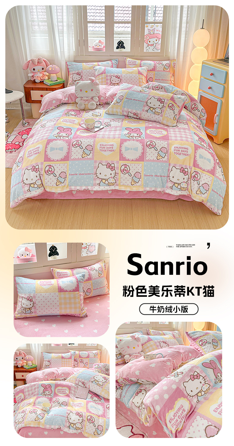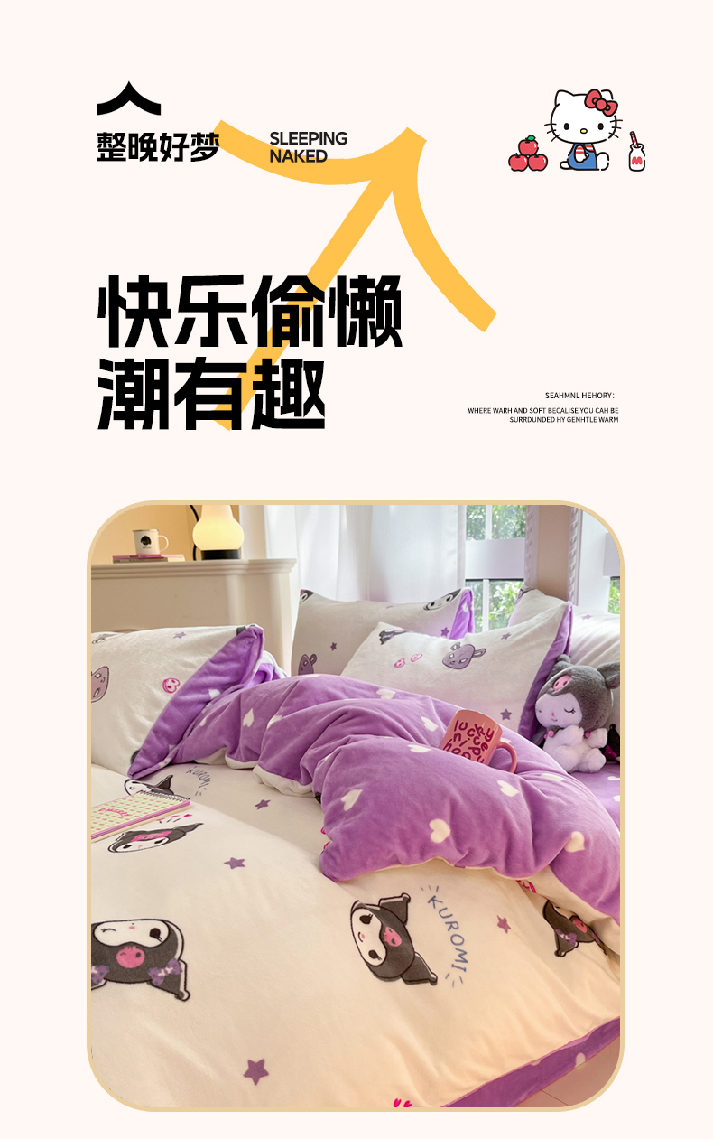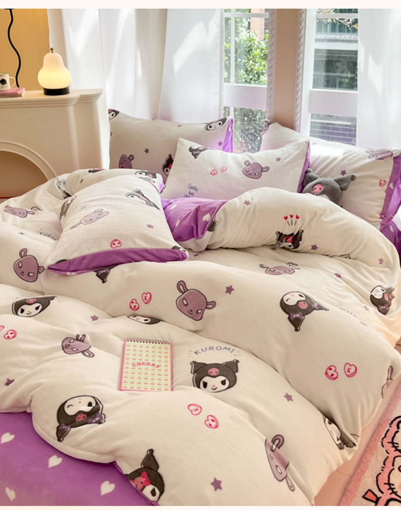当前位置: 91家纺网 > 商品网购 > 床品套件 > 四件套 > 牛奶绒四件套 > 博雅 2025新款三丽鸥正版授权高克重牛奶绒小版四件套提供买家秀 牛奶绒小版-满版库洛米