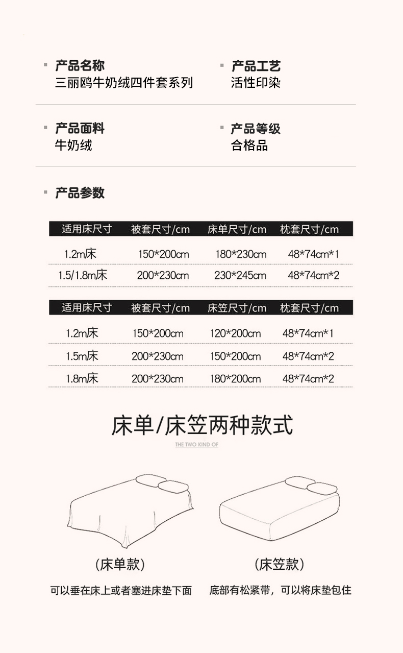 1.8m床笠款四件套 | ¥105.00 |