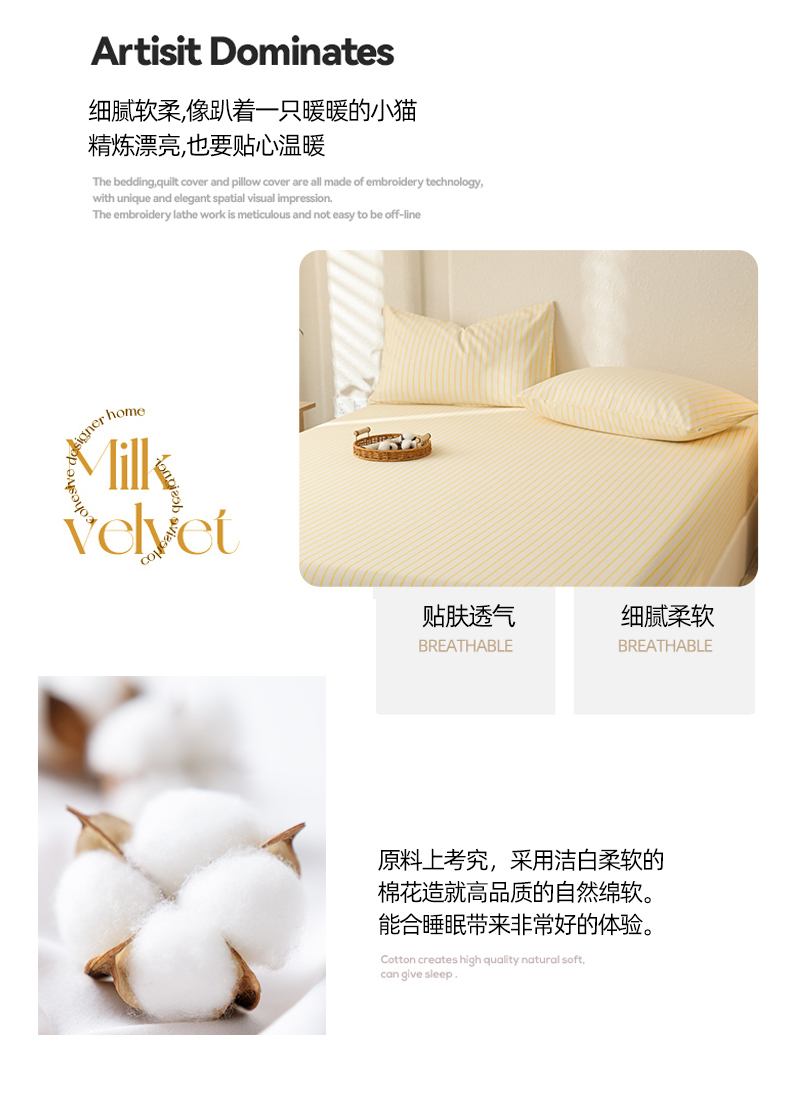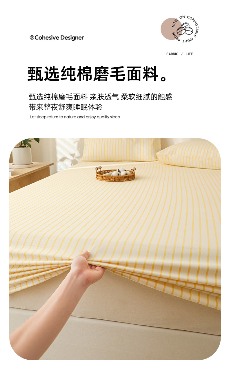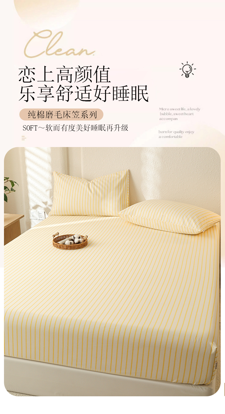 • 91家纺网 家纺一手货源 找家纺 简宜家居(朝初家纺) 2025新款纯棉全棉磨毛单床笠系列 线素-黄