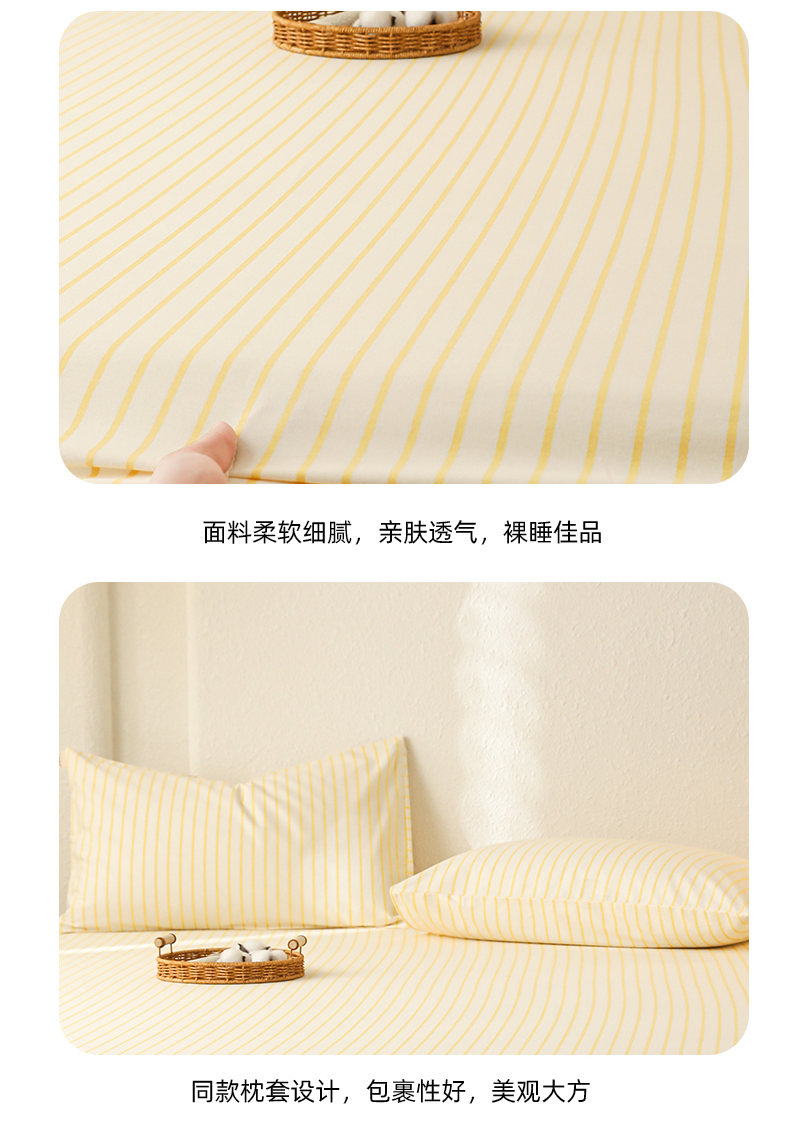 简宜家居(朝初家纺) 2025新款纯棉全棉磨毛单床笠系列 线素-黄