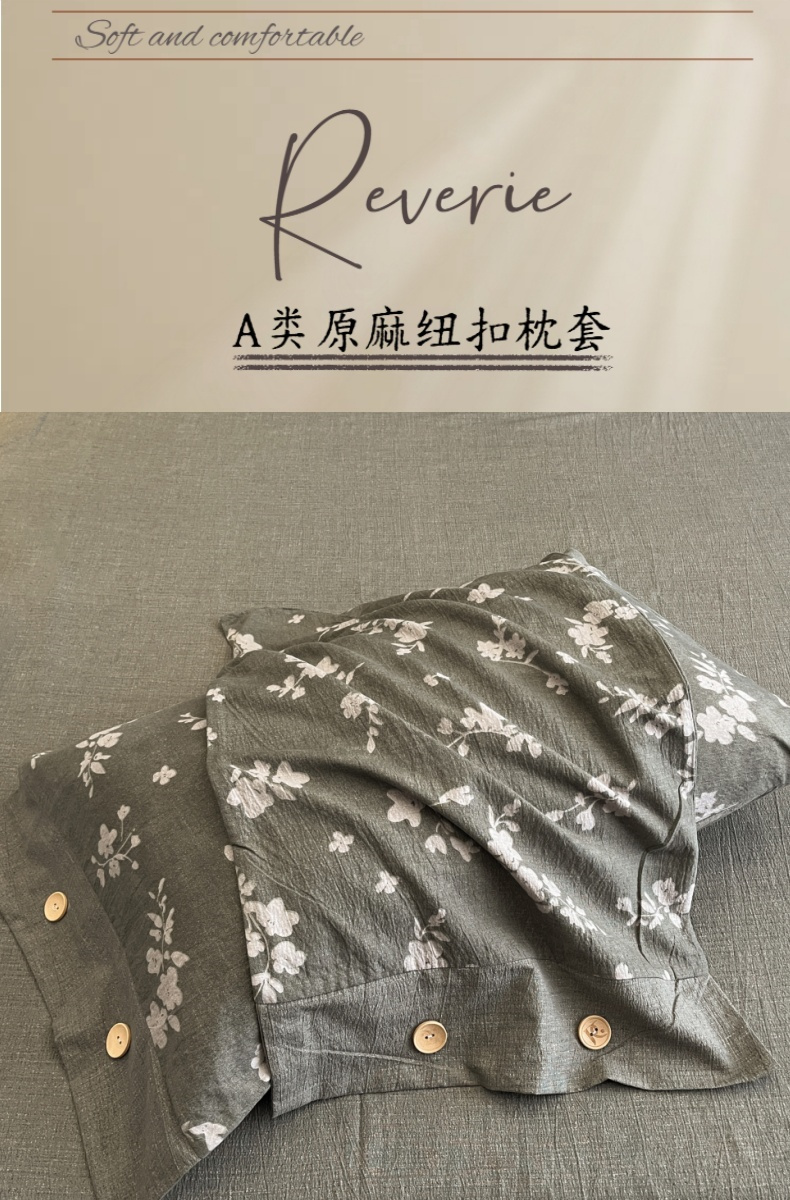 商品名称:梦舒羽 2025新款原麻纽扣枕套宿舍单只枕芯套枕头套一对装枕芯内胆套 曼妙花园