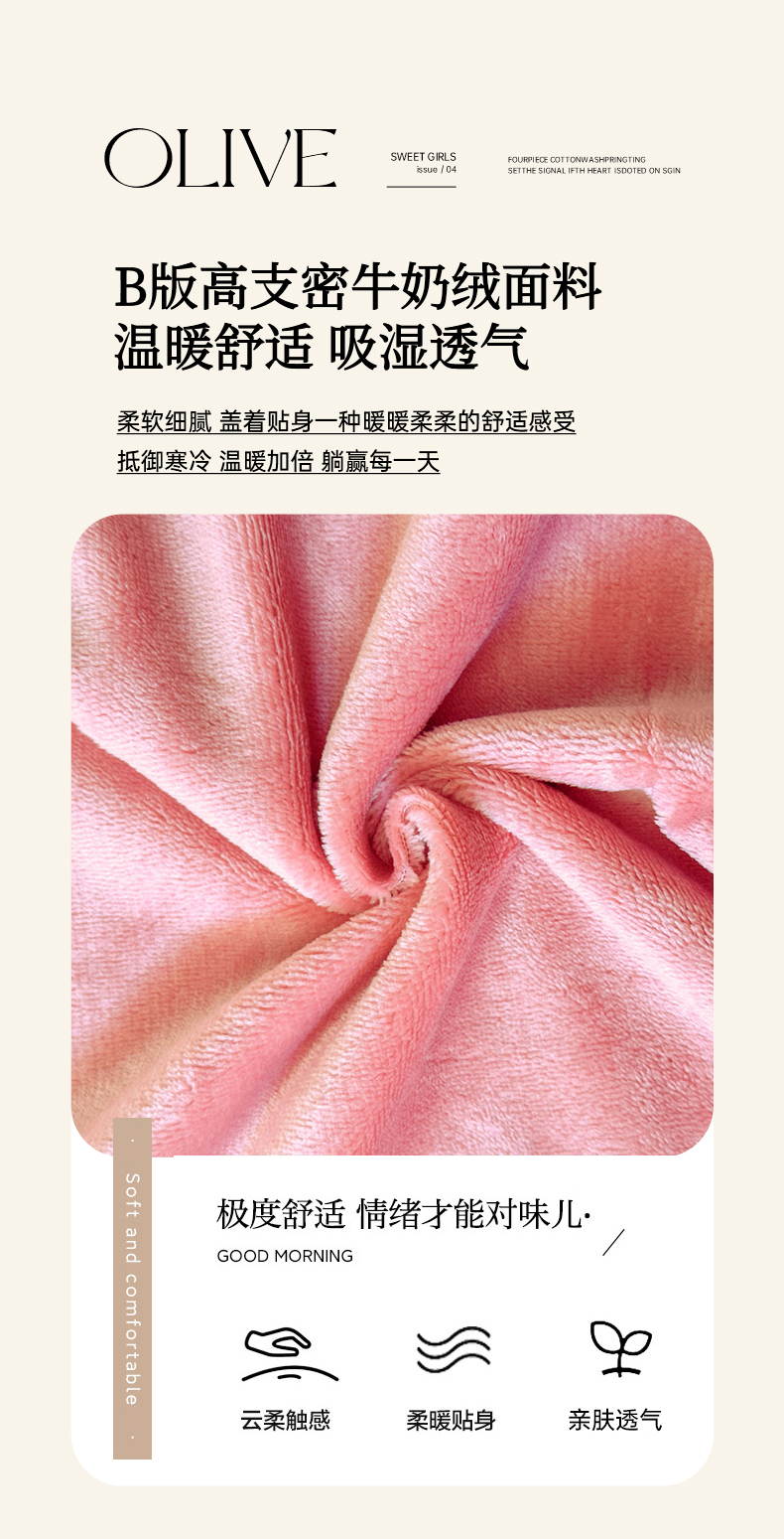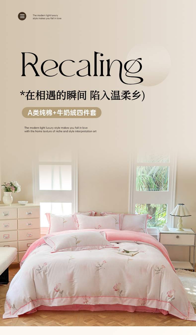 当前位置: 91家纺网 > 商品网购 > 床品套件 > 四件套 > 牛奶绒四件套 > 7V 2025新款纯棉加绒四件套 一见倾心