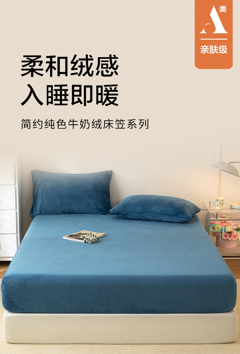 商品名称:(总)眠博士 2025新款简约牛奶绒纯色单床笠-场景二