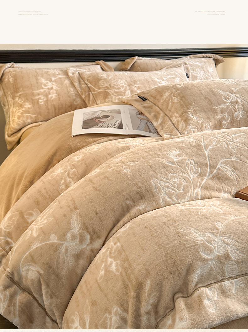 (总)盛秋家纺 2025新款佩拉着色烂花牛奶绒四件套【轻奢风格】,山茶花语-咖,素影-灰,馥色芬芳-粉,花溪听雨-咖,清新叶语-浅咖,山茶花语-粉,山茶花语-蓝,素影-浅咖