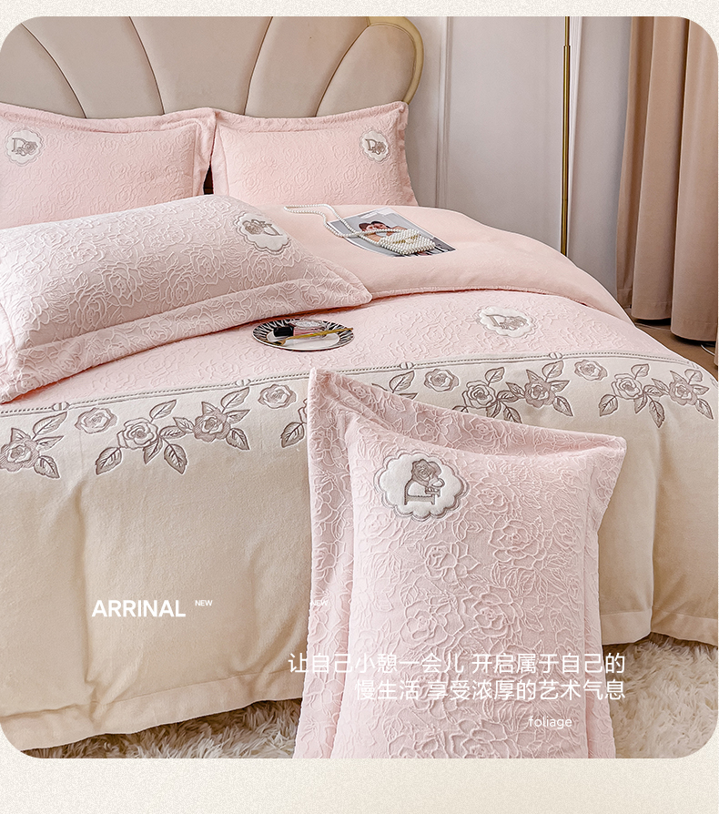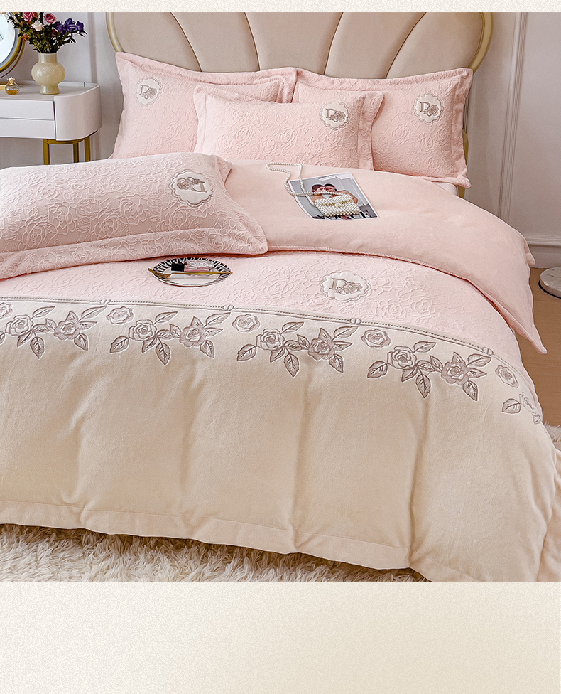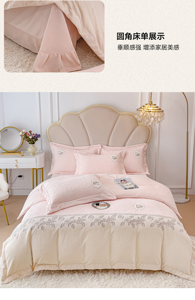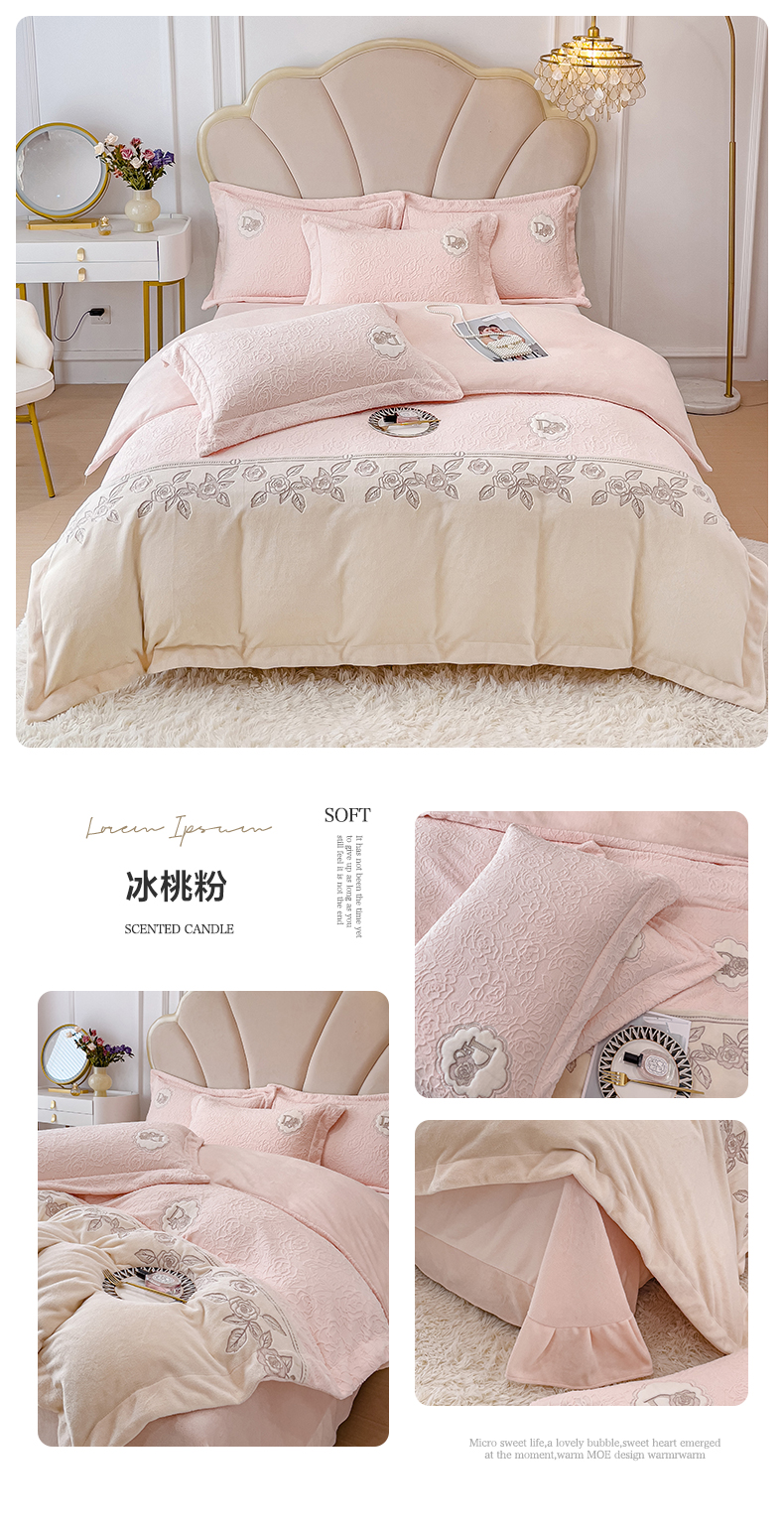 (总)2024秋冬新款全消光拼角雕花绒牛奶绒四件套,安娜-豆粉,安娜-抹绿,安娜-奶油橙,典雅-豆粉,典雅-高级灰,典雅-抹绿,典雅-奶油橙,慕丝-豆沙,慕丝-玫瑰粉,慕丝-奶油橙