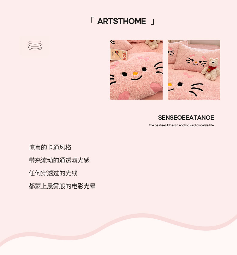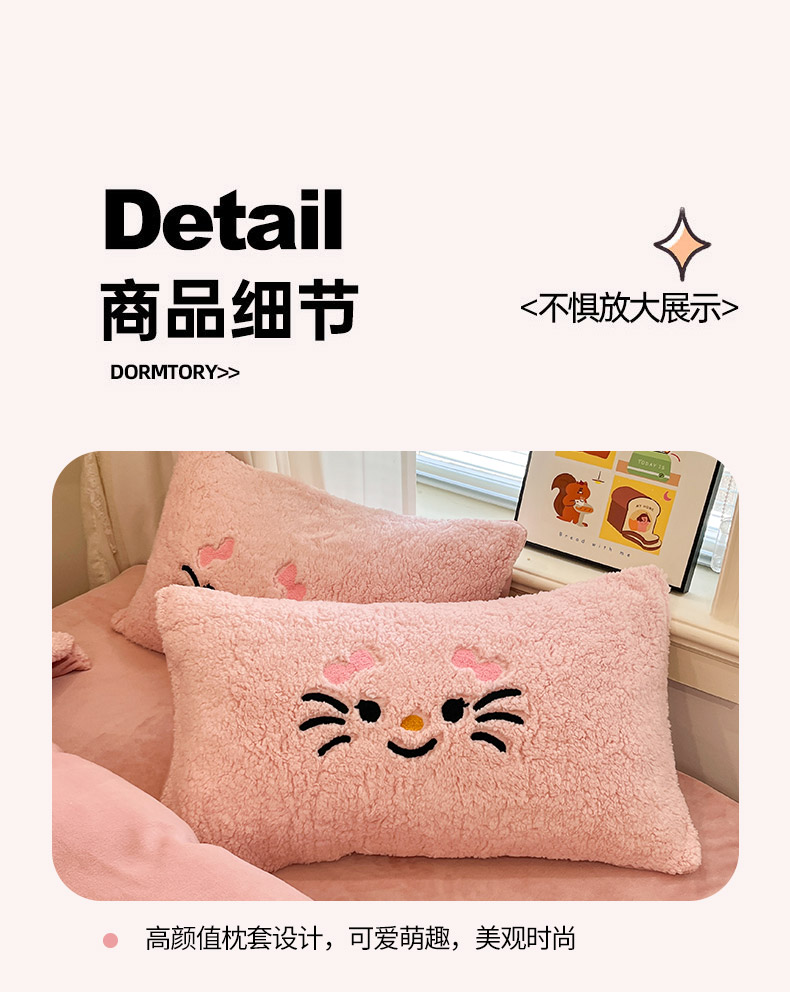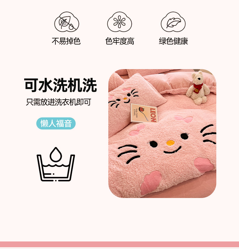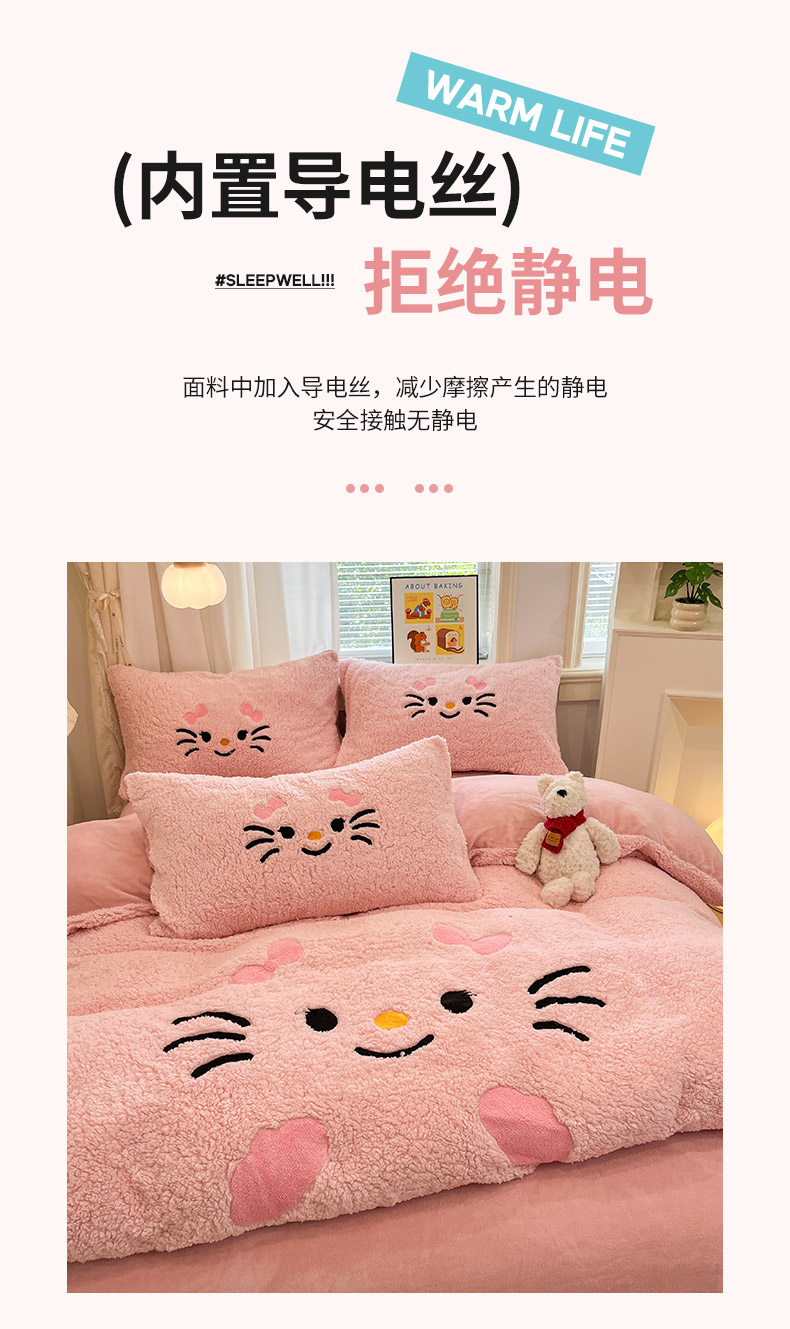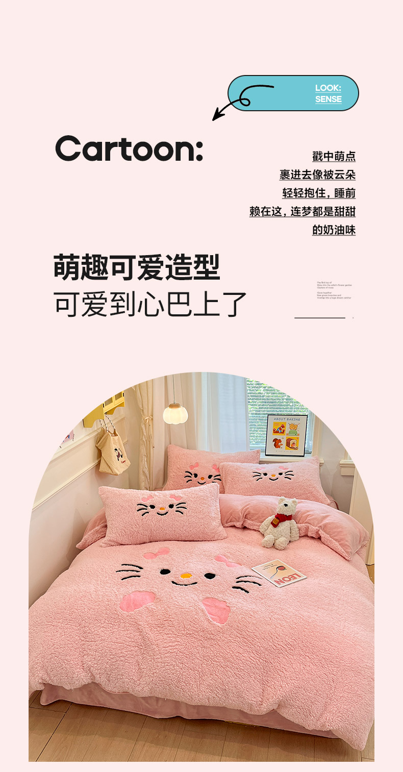 商品名称:梓之赫 2025新款大版羊羔绒牛奶绒卡通四件套冬季加厚保暖 可爱猫咪-粉