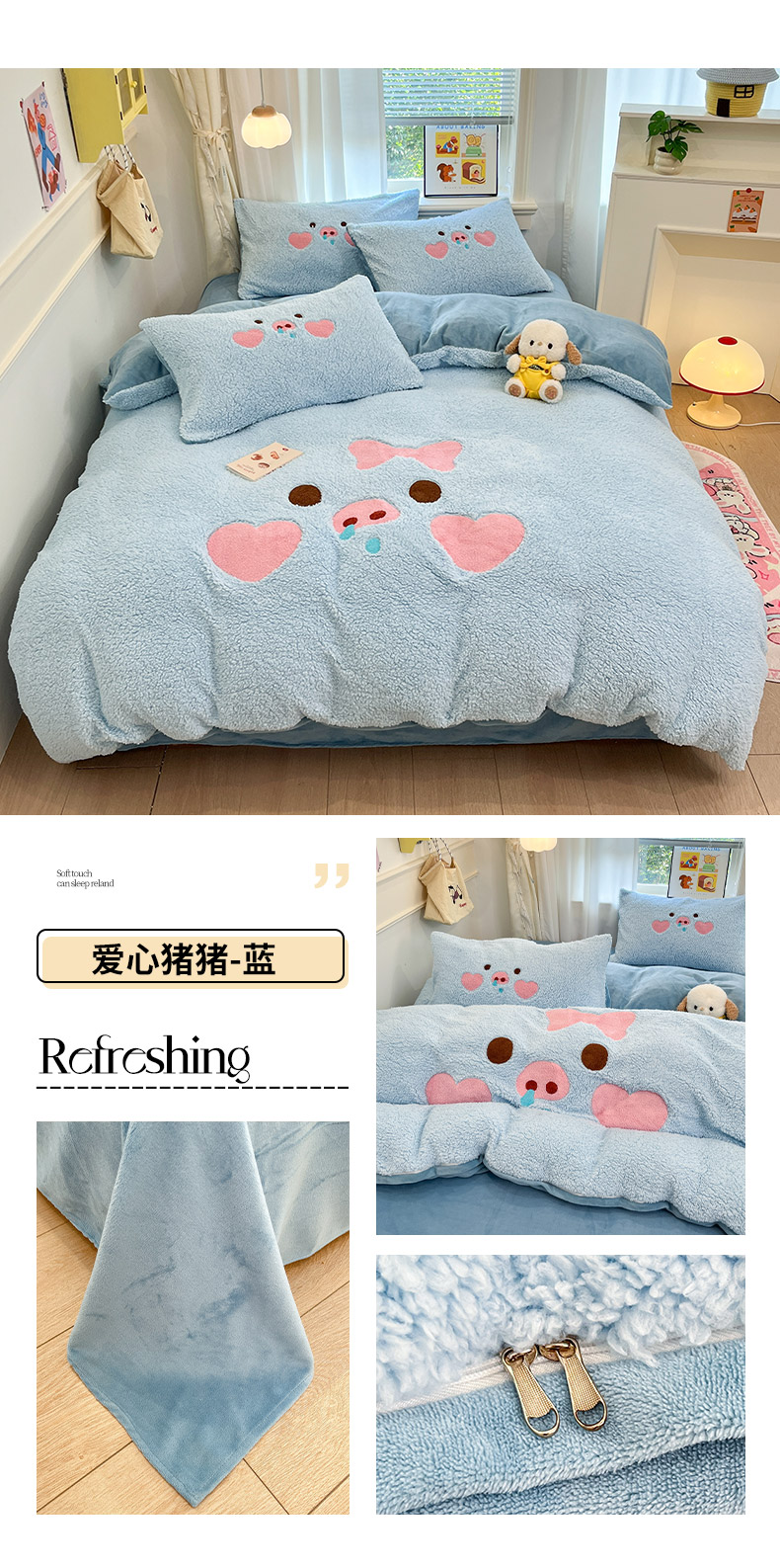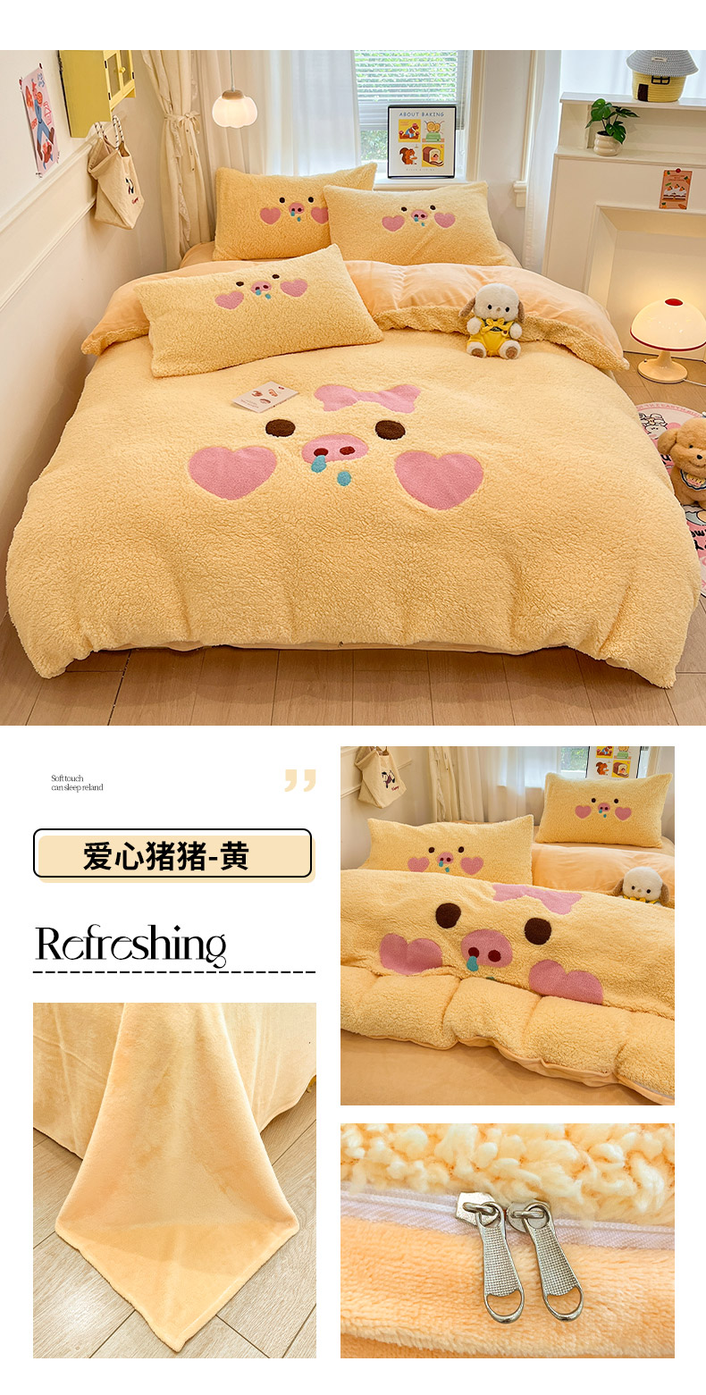 (总)梓之赫 2025新款大版羊羔绒牛奶绒卡通四件套冬季加厚保暖,爱心猪猪-白粉,爱心猪猪-粉,爱心猪猪-黄,爱心猪猪-蓝,大耳鼠狗-白蓝,大耳鼠狗-蓝,可爱猫咪-白粉,可爱猫咪-粉,晚安狗-白蓝,晚安狗-黄,晚安狗-咖,晚安狗-蓝