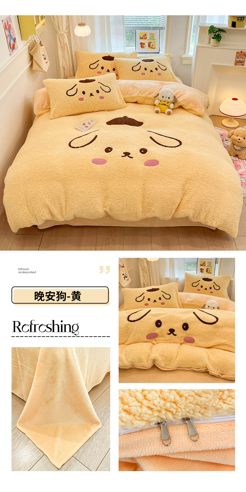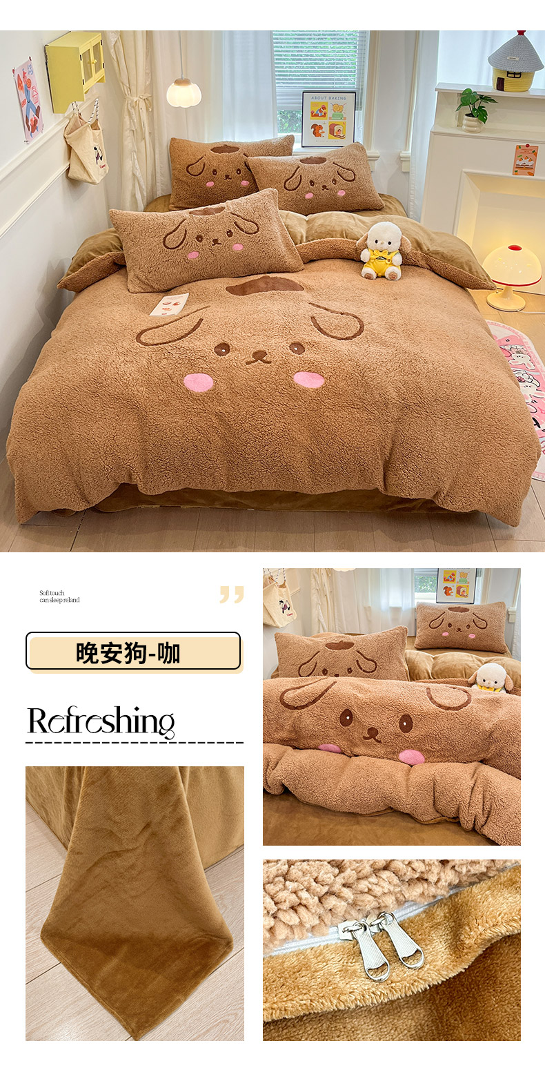 (总)梓之赫 2025新款小版羊羔绒牛奶绒卡通四件套冬季加厚保暖,汉堡-白卡其,汉堡-黄,汉堡-咖,企鹅-白卡其,企鹅-粉,企鹅-蓝,曲奇-白粉,星星小狗-白卡其,星星小狗-蓝